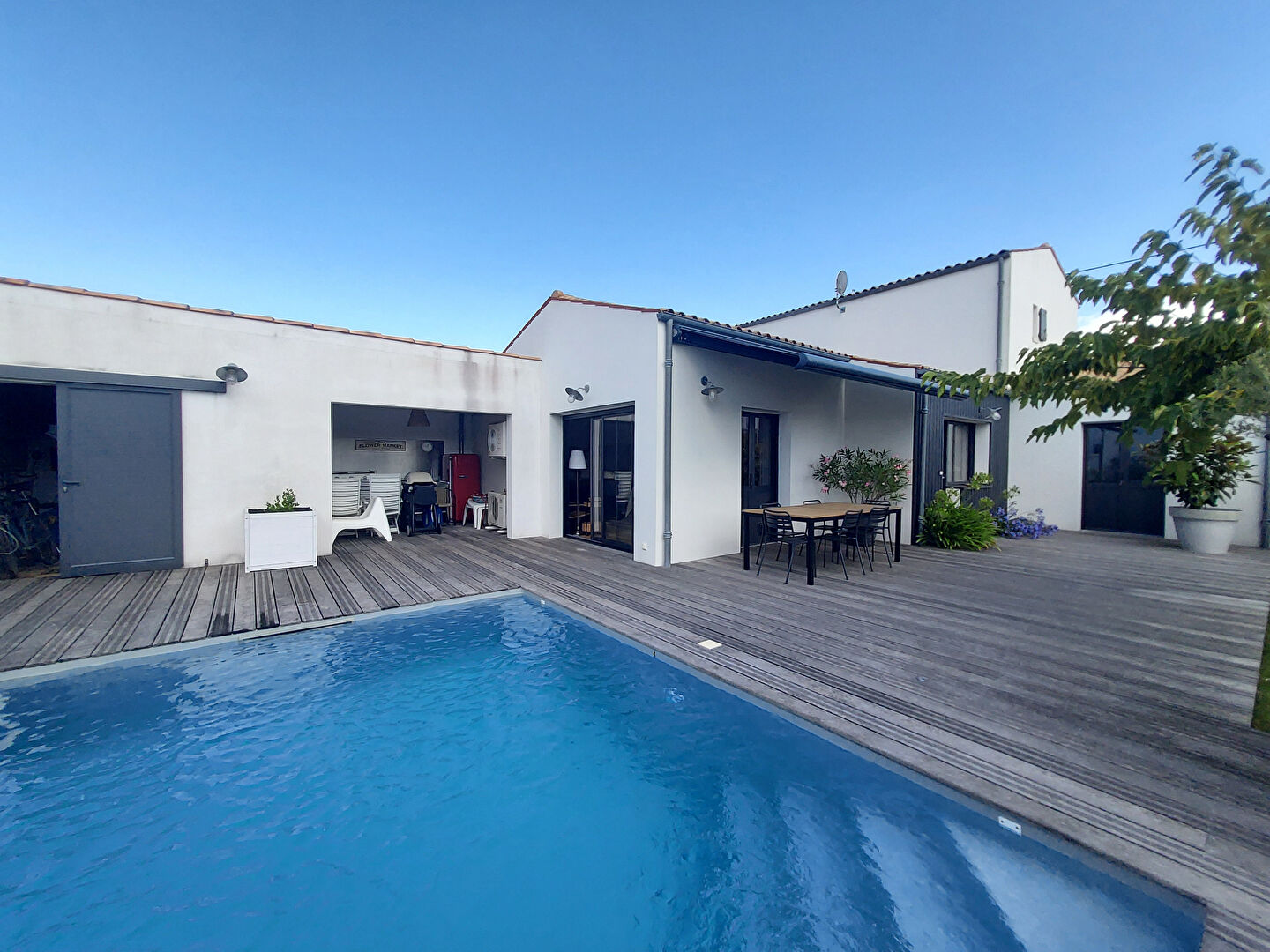 A 2 km des commerces et de la plage du Château, sur un terrain de 376 m², MAISON (2016) d'une surface habitable d'environ 134 m² comprenant au rez-de-chaussée, une pièce de vie avec cuisine équipée de 55 m², un dégagement de 4,50 m² desservant une première chambre parentale avec salle d'eau et placard de 20 m², une buanderie, des WC séparés - A l'étage, un palier desservant deux chambres d'environ 10 m² avec placards, une salle d'eau et des WC séparés - Chauffage au sol par pompe à chaleur air-eau et radiateurs à l'étage - A suivre, une chambre annexe avec salle d'eau et WC d'environ 19 m² - Un préau avec cuisine d'été d'environ 11 m² - Une piscine 5 x 4 m avec local technique + local à vélos d'environ 12,50 m² - Belles prestations. (4.21 % honoraires TTC à la charge de l'acquéreur.)