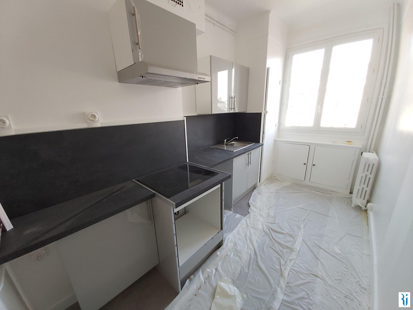 ROUEN - GROS HORLOGE Dans résidence de standing, un appartement F2 refait à neuf il y a deux ans, comprenant : une entrée avec placard, un séjour donnant sur cuisine ouverte aménagée et équipée (meubles hauts et bas, réfrigérateur, plaques de cuisson), une chambre, une salle de bain (lavabo, baignoire et branchement machine à laver) et un WC séparé. Chauffage individuel électrique *Assurance habitation à 11.46 euros / mois.