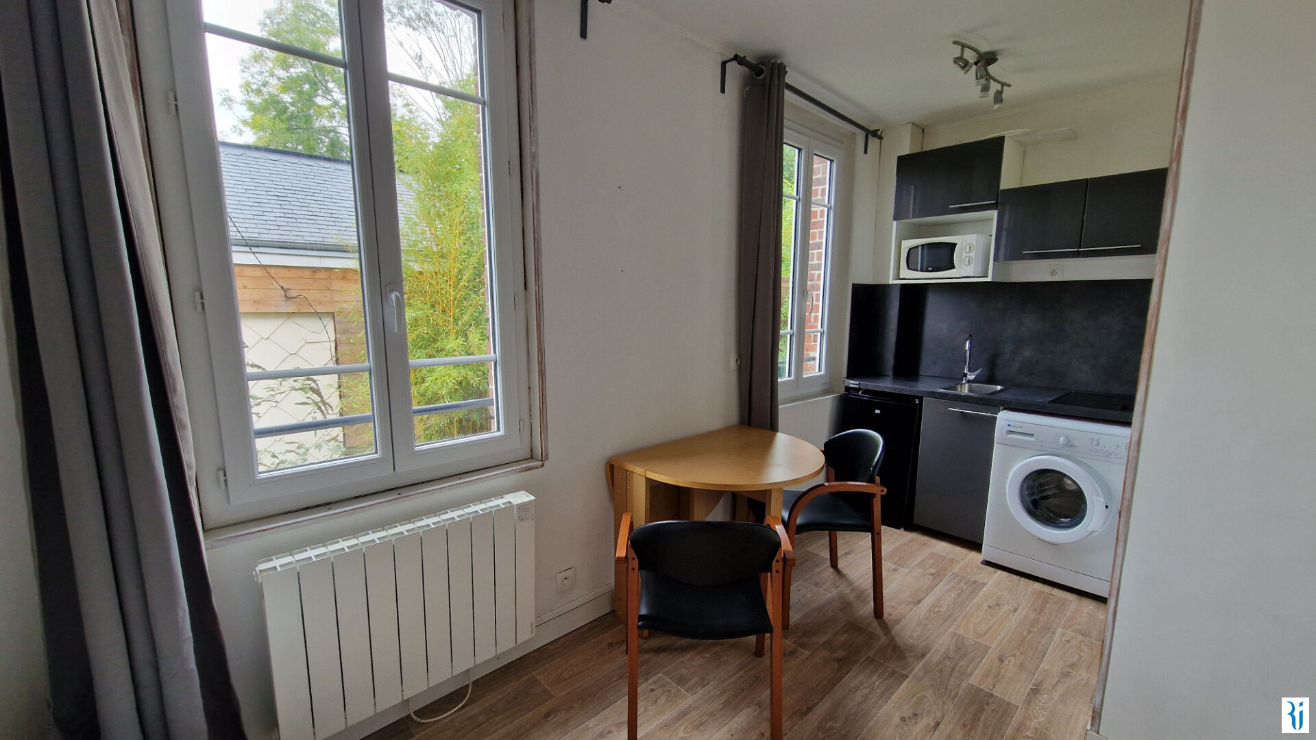 BOIS GUILLAUME DERRIERE LE CHU - rue de la Prévotière Dans une résidence calme, F1 de 24,18 m², au rez-de-chaussée, comprenant : entrée avec grand placard, séjour avec balcon, coin cuisine équipée (plaques de cuisson + réfrigérateur), salle de bains. Chauffage et eau individuels. Disponible dès maintenant.