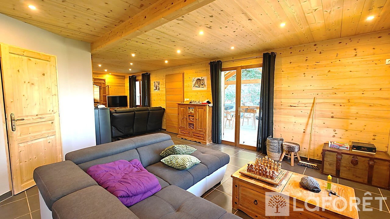 L'agence Laforêt vous propose, à 10 minutes d'Embrun, cette belle maison contemporaine de type 6, située dans un environnement calme et préservé, parcelle de 7 300 m², vue panoramique imprenable sur le lac et les montagnes.Composée d'un double salon lumineux ouvrant sur une vaste terrasse, salle à manger avec cuisine ouverte entièrement équipée, 4 chambres confortables, 1 salle d'eau, 1 salle de bains, 2 WC.Grand garage.Un cadre idyllique pour profiter de la nature et du calme absolu.Honoraires charge Vendeur.Vous souhaitez visiter ce bien ? Contactez