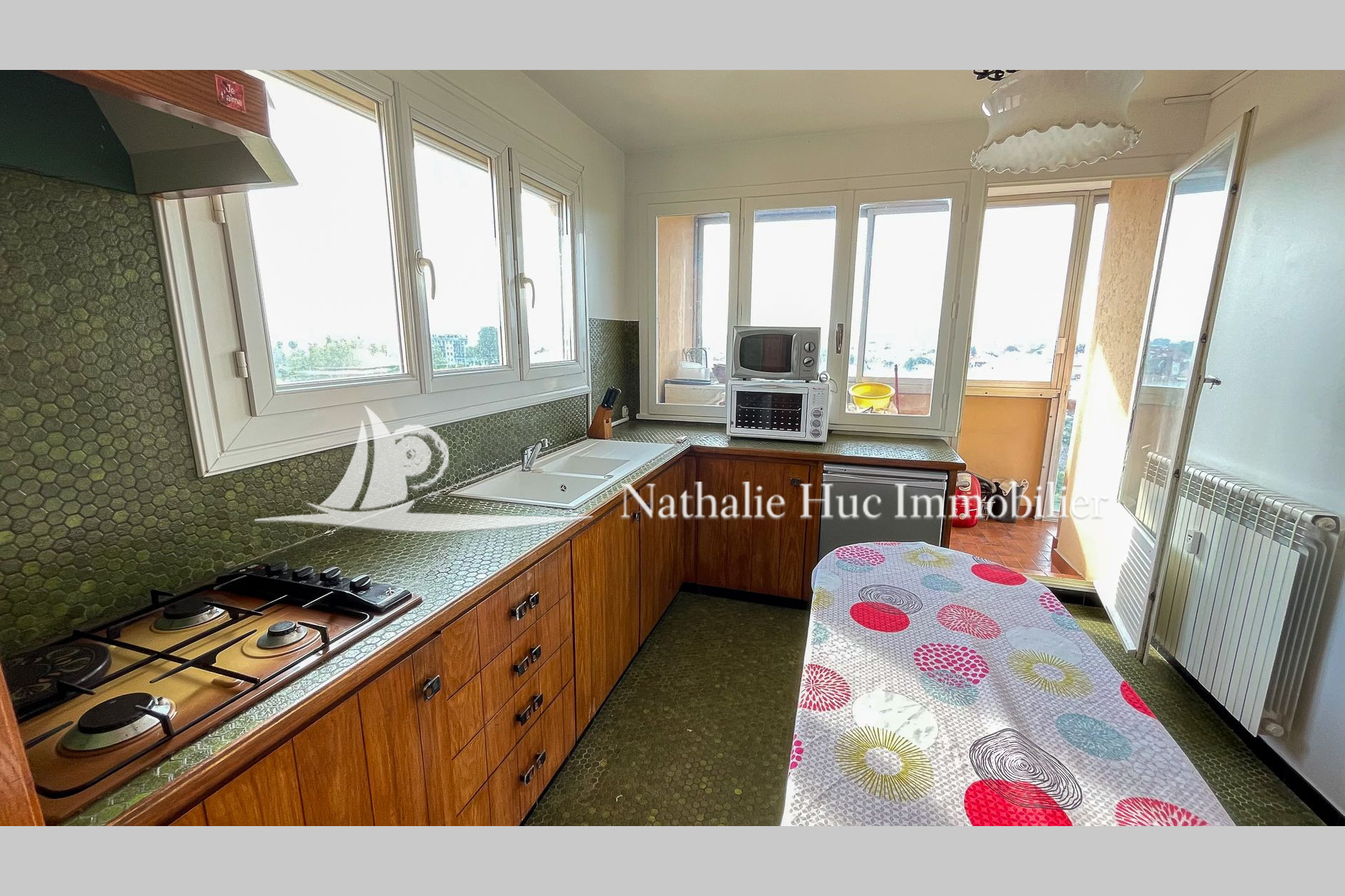 66000 Perpignan. Au centre-ville Castillet, appartement très lumineux de 70 m², situé au dernier étage, composé d'une entrée spacieuse, un salon séjour avec vue panoramique ouvert sur loggia, deux chambres, une salle de bain, une grande cuisine avec une belle vue donnant sur terrasse/loggia.Une cave. Idéal pour une vie citadine