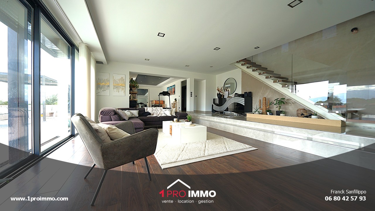 Un garage de 38 m² avec porte sectionnelle motorisée, une piscine chauffée et à debordement, un terrain de pétanque complêtent ce bien.