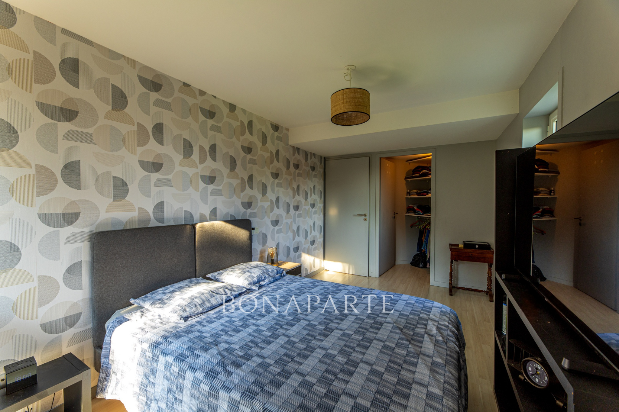 Le coin nuit accueille également trois autres chambres dont 2 équipées de dressings, préservant calme et intimité. En contrebas, un demi-sous-sol réunit un garage double (env. 54 m2), un espace vélos et une buanderie.