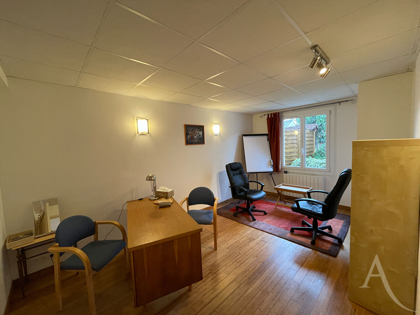 Une maison d'habitation comprenant au premier niveau : entrée, séjour avec poêle à bois, cuisine aménagée et équipée, salle de bains avec WC, placards, deux chambres. A l'étage : trois chambres, dégagement, grenier. Au rez-de-jardin: un local professionnel comprenant une grande salle de réunion, un coin cuisine, un bureau et un WC. Buanderie, cave. Terrain 320 m2 (4.86 % honoraires TTC à la charge de l'acquéreur.)