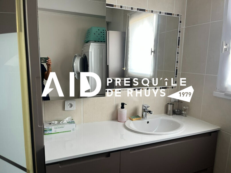 SAINT-GILDAS DE RHUYS, maison meublée à louer jusqu'au 30 juin 2026. Dans un endroit calme et clos, cette maison en bois est composée d'une entrée, cuisine ouverte équipée et aménagée, salon-séjour (cheminée) ouvert sur terrasse et jardin arboré, salle d'eau, wc. A l'étage : trois chambres, salle d'eau. Contact Nelly 06 89 29 58 60 nelly@aid-immobilier.com DPE EN COURS.