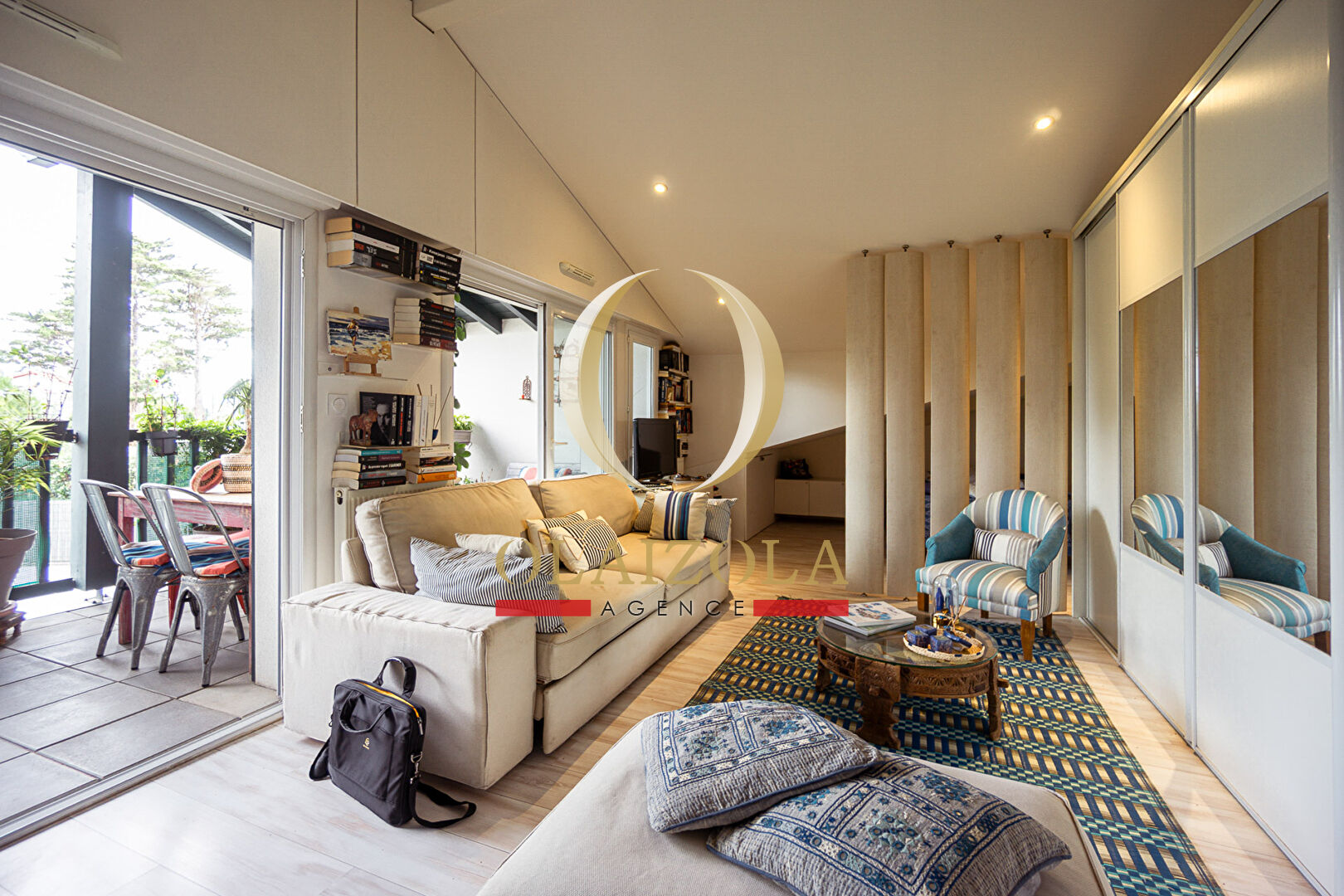 Situé au deuxième et dernier étage d'une résidence récente et sécurisée, cet appartement T1bis d'environ 31 m² loi Carrez (environ 39 m² au sol) bénéficie d'un emplacement privilégié à Bidart, à seulement 600 mètres de la plage du Pavillon Royal et à 300 mètres des commerces. Idéalement exposé plein sud, il offre une luminosité exceptionnelle grâce à ses deux grandes baies vitrées ouvrant sur une vaste terrasse de 13,4 m², véritable prolongement du séjour. Dès l'entrée, vous découvrirez une belle pièce de vie de près de 25 m² avec cuisine américaine aménagée et équipée, parfaitement agencée pour un confort de vie optimal. L'espace nuit en mezzanine accueille une chambre mansardée, et une grande salle d'eau avec double vasque complète l'ensemble. L'appartement est astucieusement équipé en rangements, avec de nombreux placards intégrés et un grand dressing, rendant le bien parfaitement adapté à une vie à l'année. En bon état général, avec menuiseries en PVC double vitrage, volets roulants électriques, chauffage individuel au gaz (chaudière Chaffoteaux), cet appartement dispose également d'un garage fermé de 14 m² et d'un accès sécurisé aux places visiteurs dans la résidence. L'immeuble est équipé d'un ascenseur, d'un interphone, d'un digicode et d'un visiophone. L'ensemble de la copropriété (95 lots dont 39 d'habitation) est bien entretenu, sans procédure en cours. Ce bien conviendra parfaitement pour un premier achat, une résidence principale ou secondaire, dans un secteur prisé et recherché du littoral basque. Avec les lignes de bus à proximité immédiate, vous rejoindrez facilement Biarritz, Bayonne ou Hendaye. Notre agence vous accueille téléphoniquement du lundi au samedi, de 8h à 19h, afin de répondre à toutes vos questions et de vous accompagner dans vos projets immobiliers. N'hésitez pas à nous contacter pour obtenir des informations personnalisées et un suivi attentif de vos démarches. Référence : OLAVMO1368 VENTE IMMOBILIER BIDART HONORAIRES CHARGE VENDEUR Les informations sur les risques auxquels ce bien est exposé sont disponibles sur le site Géorisques : www.georisques.gouv.fr Copropriété de 95 lots - dont 39 lots habitation. (Pas de procédure en cours). Charges annuelles : 680 euros.