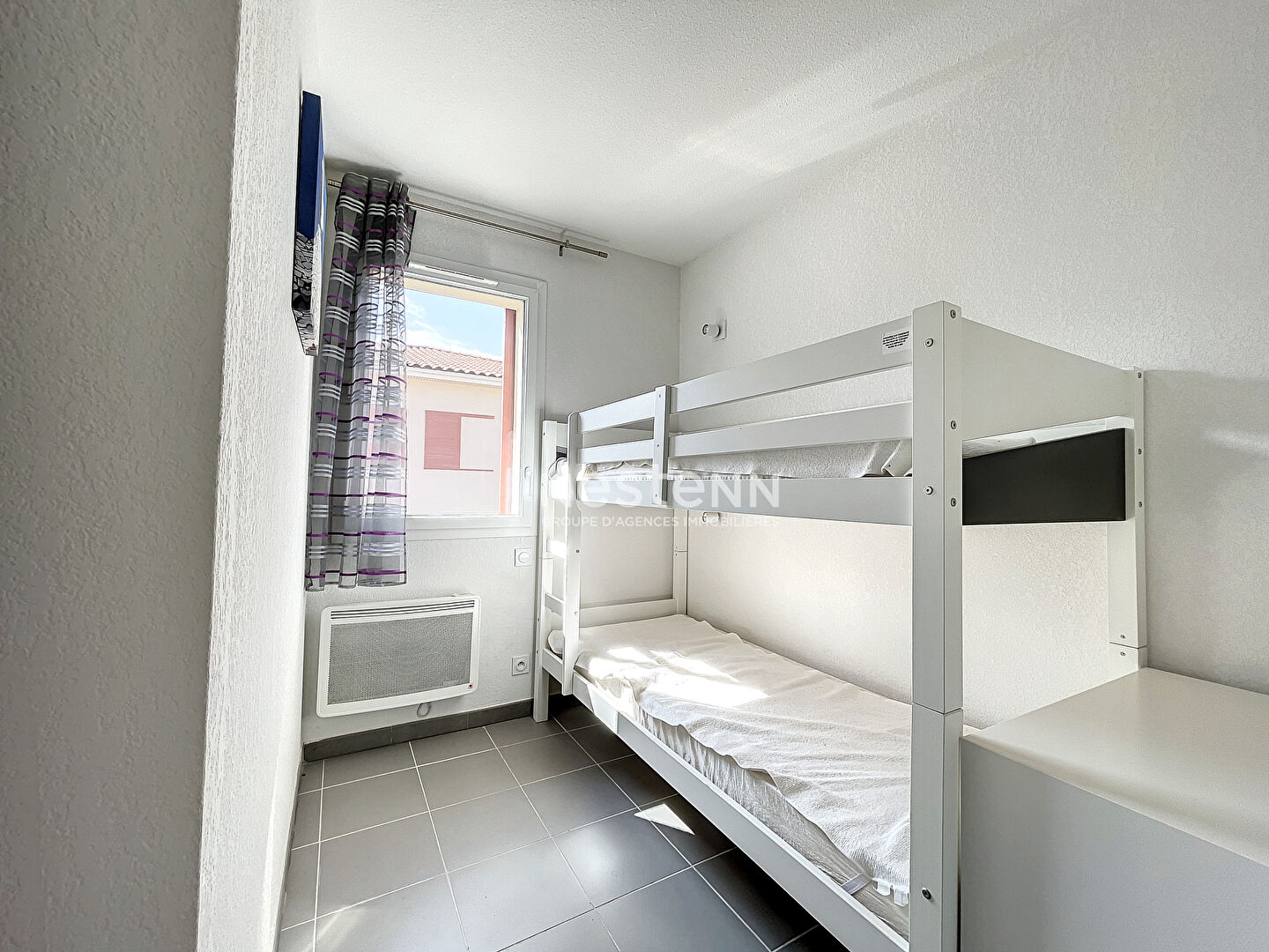 ARGELES sur MER : Libre de toute occupation ou location. Entre plage et village, magnifique appartement de type F3 de 38m2 avec 6 couchages au deuxième et dernier étage de la résidence (résidence avec ascenseur). Cet appartement est vendu entièrement meublé et équipé avec une cuisine ouverte, un salon-séjour donnant sur une terrasse, une chambre avec placards, une chambre cabine et une salle de bains avec WC. Idéalement situé dans une résidence arborée, sécurisée, avec piscine chauffée, sauna, jacuzzi, espace sportif, aire de jeux pour enfants, terrain de pétanque. Pour plus de renseignements, contactez nous au 04 68 92 14 51.