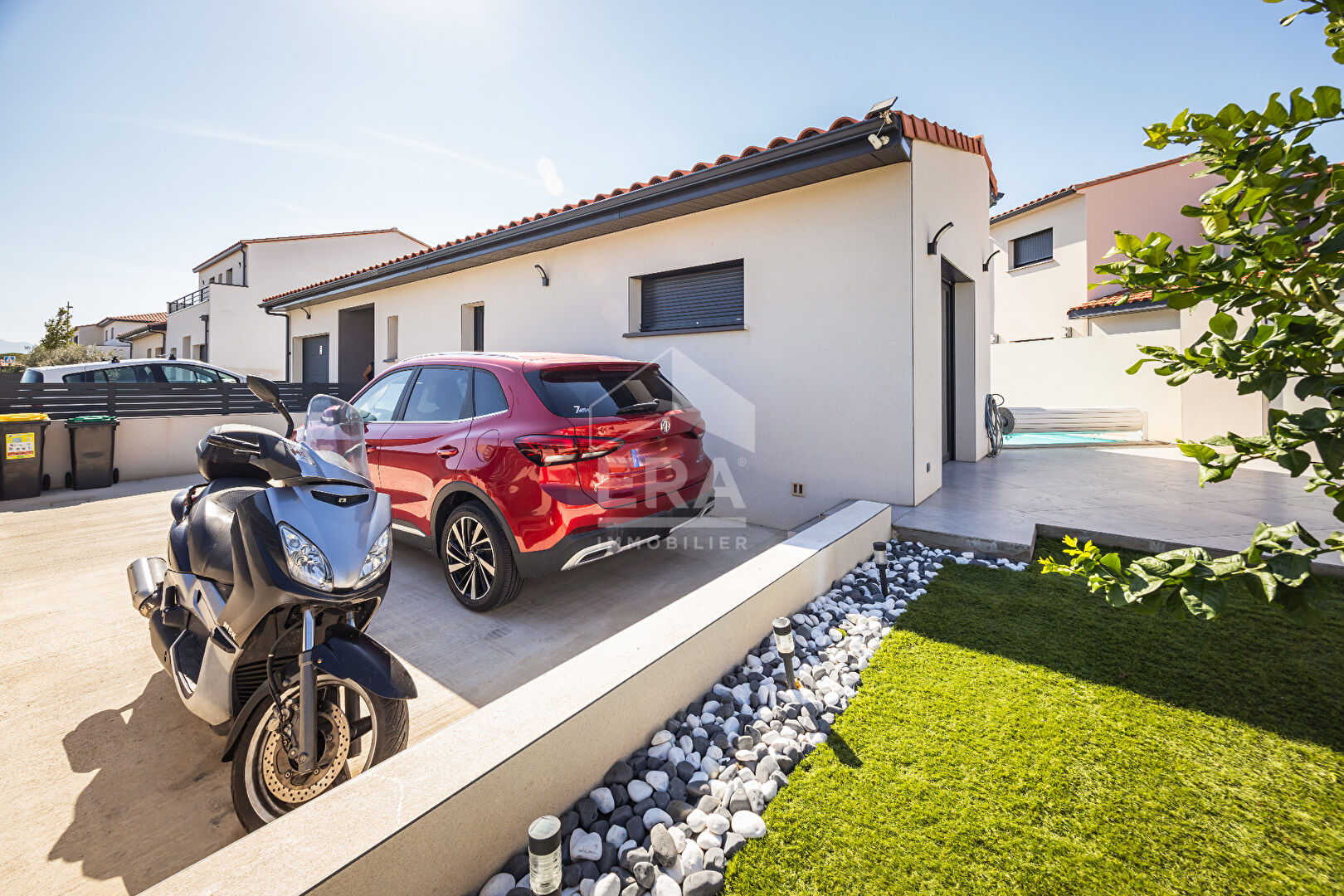 Nous vous proposons cette superbe maison contemporaine de plain-pied, construite en 2024, d'une surface utile de près de 120m², implantée sur une parcelle de 402 m². La maison se compose de 5 pièces lumineuses : un vaste séjour avec cuisine ouverte aménagée et équipée, trois chambres confortables avec placards (dont une chambre parentale) une salle de bain moderne et deux WC. Grâce à son exposition est-ouest, elle bénéficie d'un ensoleillement optimal toute la journée. Construite avec des matériaux de qualité, elle offre de belles prestations : climatisation gainable réversible, fenêtres double vitrage aluminium et volets roulants électriques. Elle offre une excellente qualité énergétique (DPE et GES classe A). Son état est irréprochable. A l'extérieur, l'espace a été pensé pour le confort et la détente : deux terrasses, idéales pour vos repas en famille ou entre amis, ainsi qu'une piscine maçonnée pour profiter des beaux jours. Vous disposerez également d'une buanderie prolongée d'un garage et de plusieurs stationnements extérieurs. Située dans un quartier résidentiel calme et recherché de cabestany, cette maison est parfaitement adaptée à une vie de famille. Les établissements scolaires (Collège Pau Casals, École Élémentaire Jacques Prévert, École Maternelle Jean de La Fontaine) sont à proximité immédiate, tout comme les commerces et services du quotidien. Une opportunité rare sur le marché, alliant modernité, confort et qualité de vie. Contactez dès maintenant Julian BOITIAUX, agence ERA Immobilier Château Roussillon pour plus de renseignements et organiser votre visite.