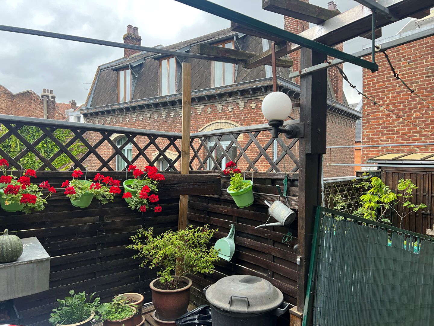 Hyper centre ville Béthune, immeuble mixte professionnel et habitation comprenant : au rez de chaussée un local professionnel de 90m² environ avec vitrines , deux grandes salle de réunion, une cuisine, sanitaires et trois bureaux. A l'étage un appartement triplex avec véranda, terrasse et balcon. Cuisine équipée, séjour, trois chambres et salle de jeux. Menuiseries double vitrage de bonne qualité; immeuble trés bien entretenu. (3.46 % honoraires TTC à la charge de l'acquéreur.)