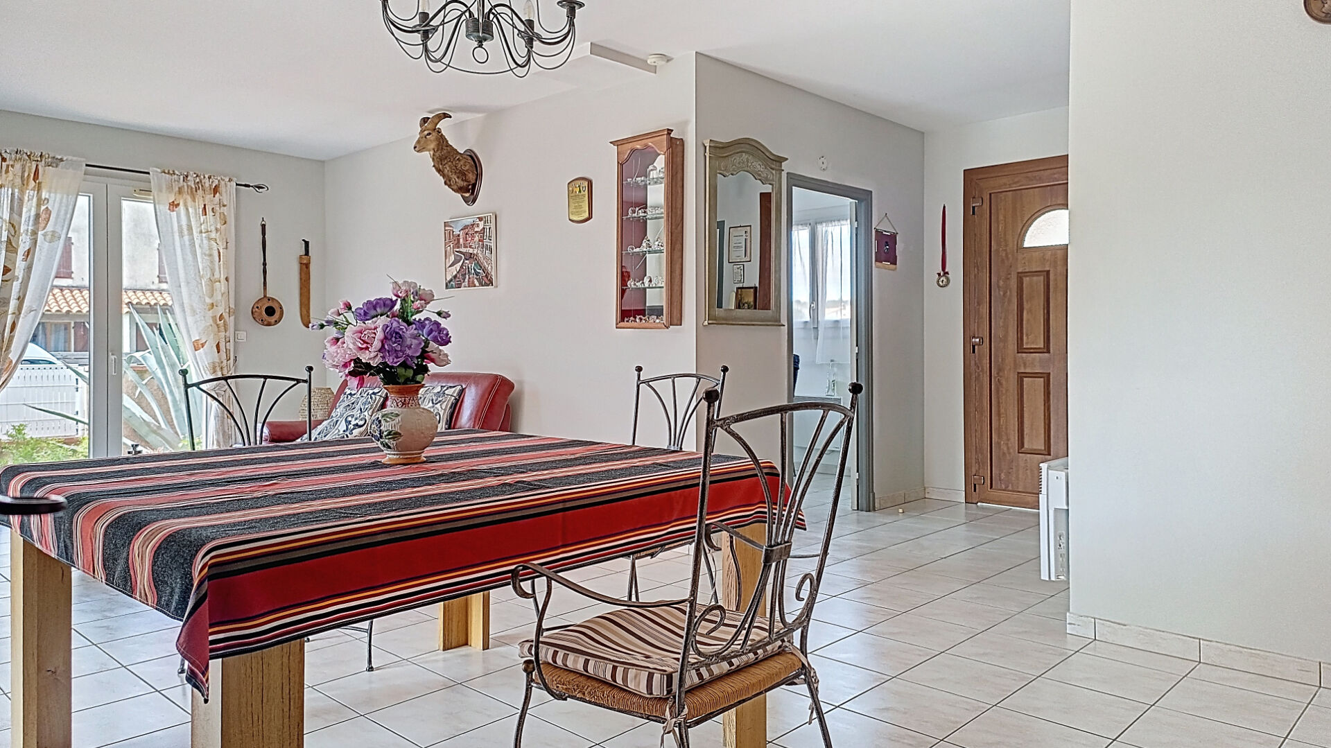 Maison de plain pied en quatre faces d'une surface de 103 m² habitable, avec deux chambres, mais possibilité dans avoir trois, plus un garage de 26 m², sur un terrain de 506 m², dans un quartier calme et résidentiel, proche de toutes les commodités. A 20 minutes des plages et à 10 minutes de la frontière Espagnole. Située dans une commune avec tout commerces, écoles, médecin, pharmacie, etc.. Aucun travaux à prévoir, la maison est climatisée, les huisseries en PVC double vitrage etc..