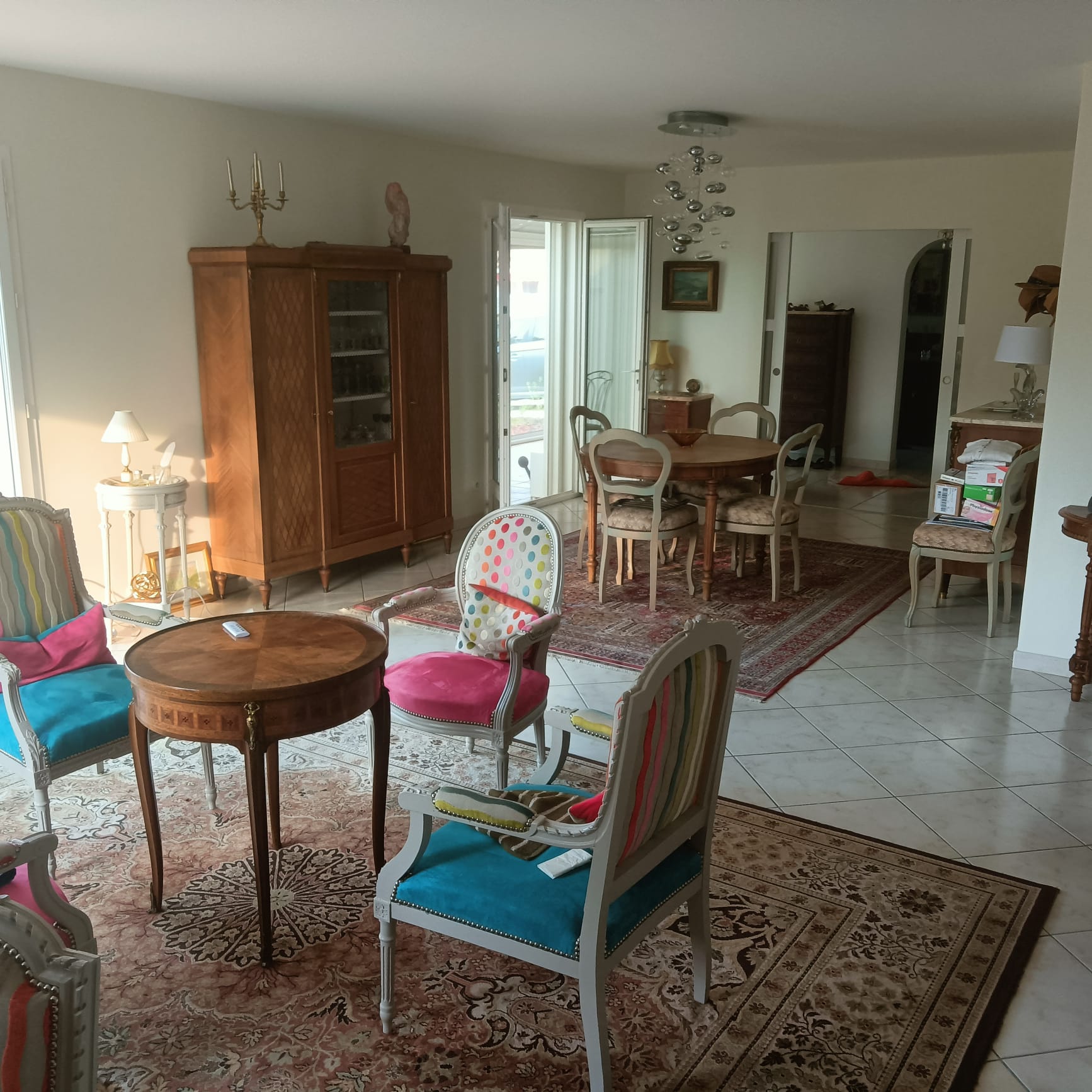 double séjour lumineux, triple exposition, 43m2, double porte à galandage.