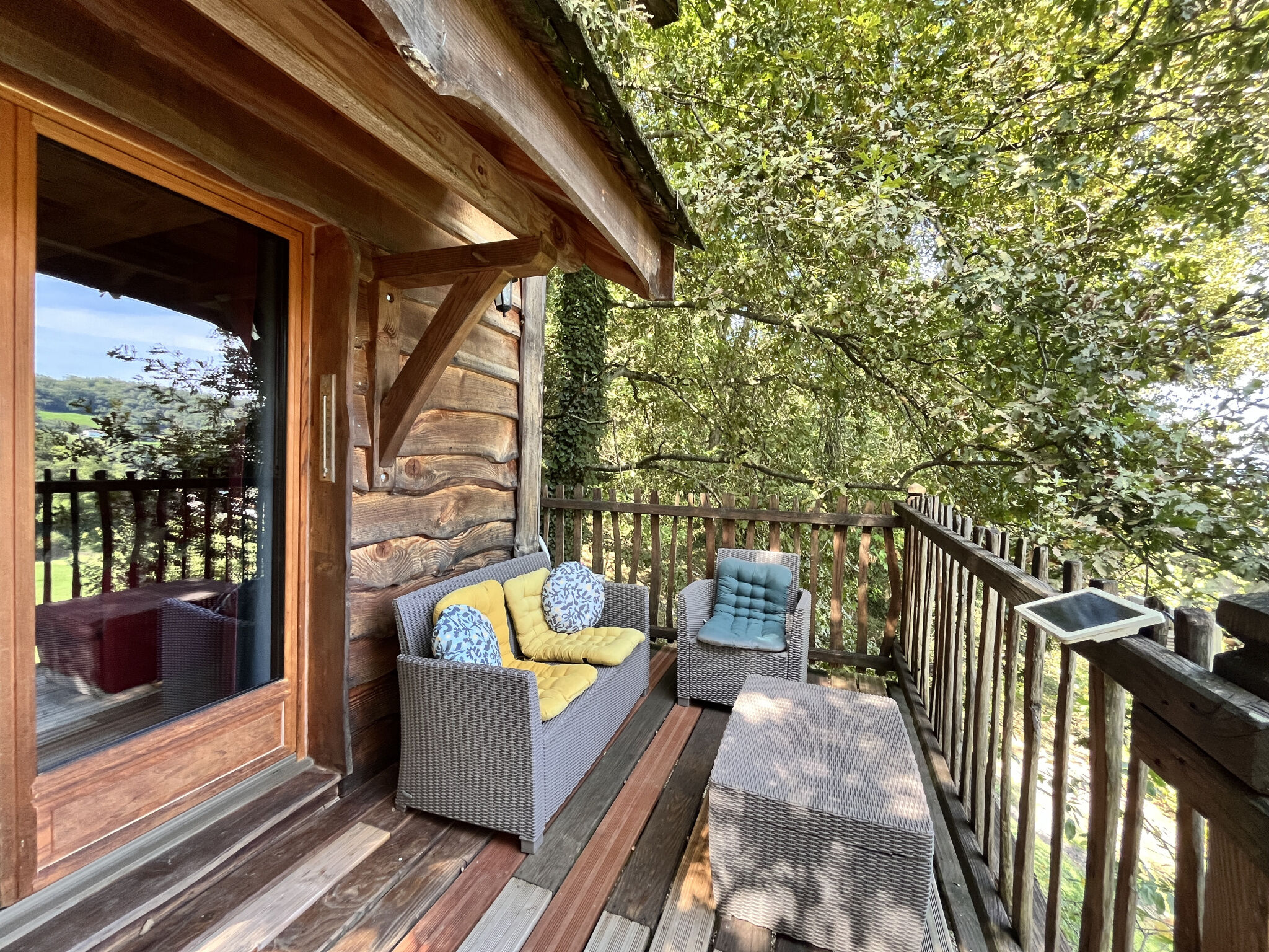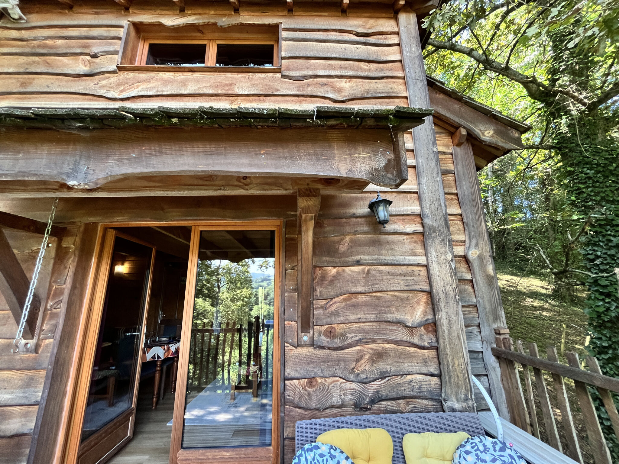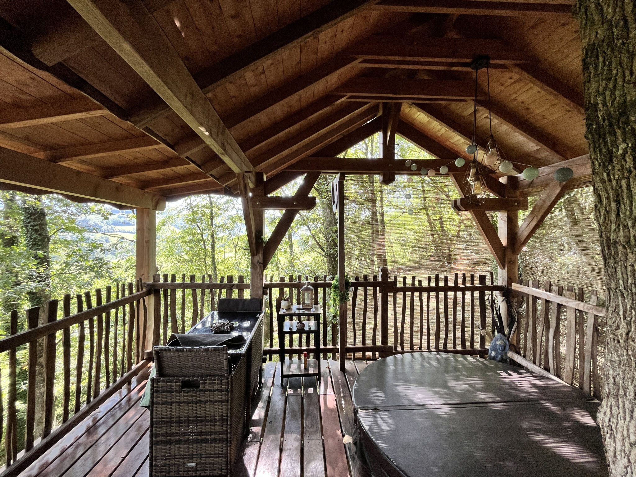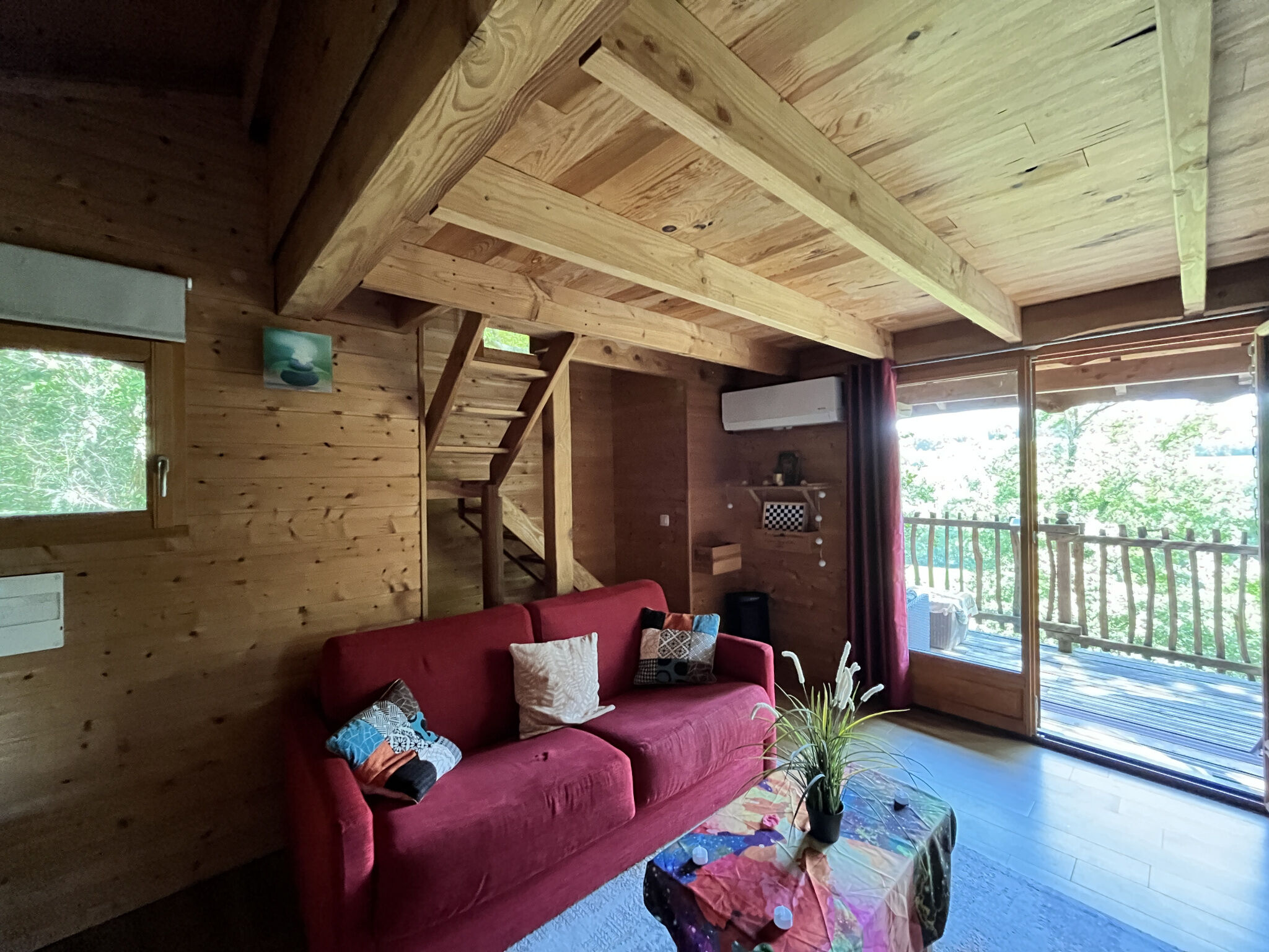Nichées dans les arbres, au milieu d'une forêt de chênes et chataîgniers, ces deux cabanes en structure bois, perchées à 5 mètres du sol, vous invitent au calme et à la détente.Le plus spacieuse des deux, en duplex, d'une surface de 38 m², comprend une pièce principale avec un séjour / coin cuisine ouvrant sur la terrasse, une salle de douche / wc, ainsi qu'un débarras. La chambre se trouve à l'étage. La cabane est complétée par un vaste espace couvert avec spa et sauna, ainsi qu'une superbe terrasse avec vue.La seconde cabane de 29 m² abrite une charmante chambre avec sa salle de douche / wc attenante. Son atout ? Son balcon qui se prolonge sur une belle terrasse couverte et équipée d'un spa.Vous aurez la possibilité de les occuper toute l'année grâce à leur contort : raccordement à l'électricité, production d'eau chaude via deux cumulus, climatisation, assainissements autonomes, cuisine, salles de douche complètes.Vous êtes à la recherche d'un bien différent et rare, ou vous avez un projet ? Attention. vous pourriez bien tomber sous le charme de ce bien atypique !Informations LOI ALUR : Honoraires charge vendeur. (gedeon_54913_31926778)