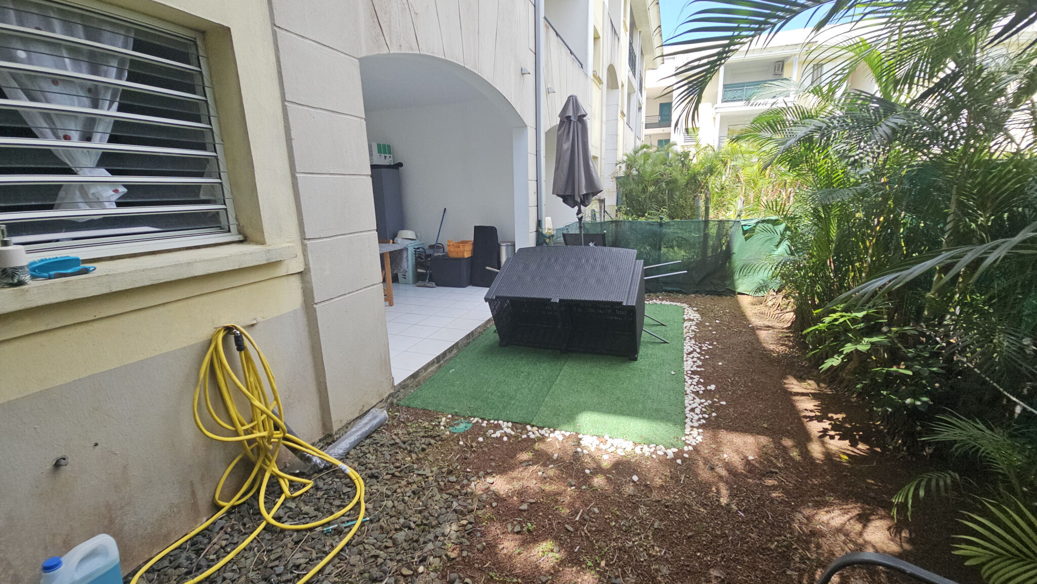 L'agence RUN INVEST vous propose cet apparment F3 en rez de chaussée.Situé en rez de chaussée, elle comprend une entrée, un wc, un séjour / salon ouvert sur une terrasse et un jardin, une cuisine, une buanderie, un dégagement, une salle de bain + douche, deux chambres climatisées + placards avec un jardin végéalisé.La résidence est fermée et sécurisée avec portail et portillon.Proximité : centre-ville, transport en commun, commerces, médecin, pharmacieLoyer : 820 EUR / mensuel (dont 35 EUR de charges)Dépot de garantie : 785 EURFrais d'agence : 682,00 EUR - Loi ALUR (maximum 11EUR / m2 habitable, comprenant la visite, la constitution du dossier, la rédaction du bail et l'état des lieux d'entrée)Pour les visites et informations, appelez au 02 62 46 90 26.Informations LOI ALUR : Surface (arrondie) : 62 m². (gedeon_90742_31924661)