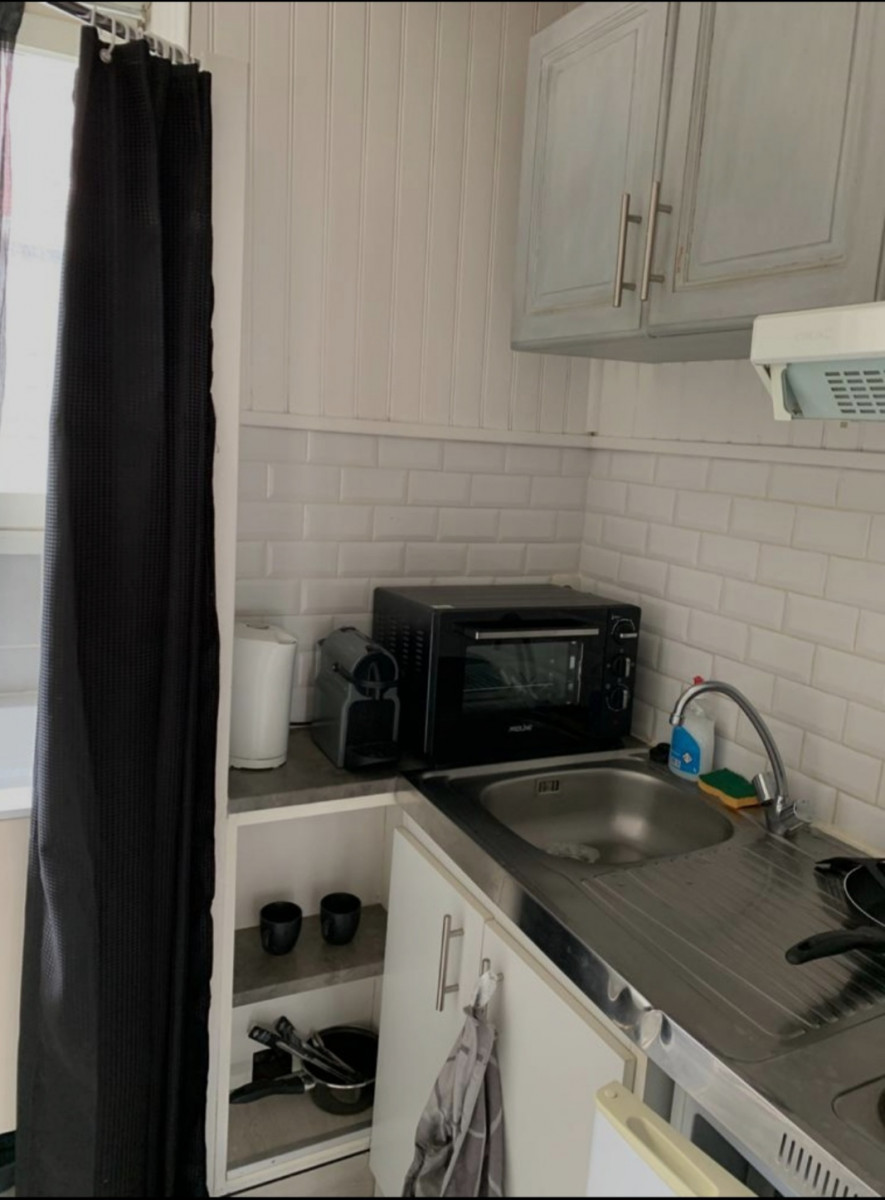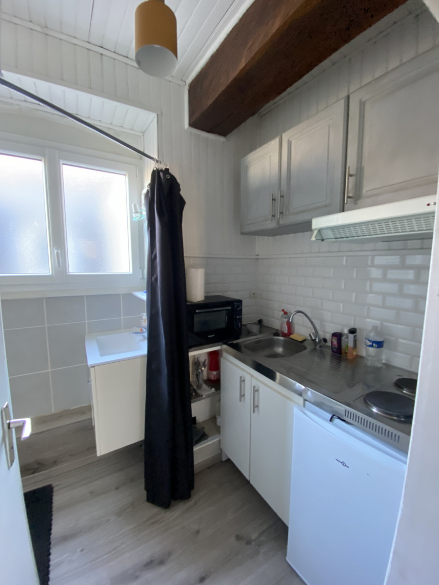 Studio meublé avec placards, salle d'eau et kitchenette.