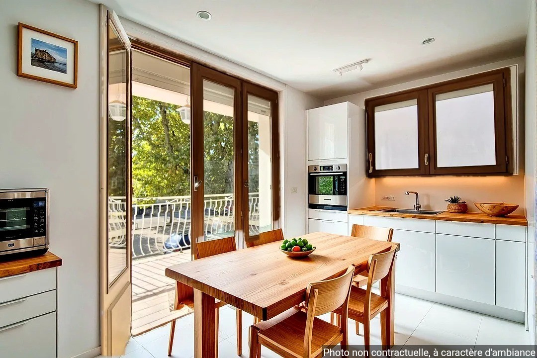 Je me souviens encore de mes premières années : j'ai abrité une famille de boulangers. Des fournées entières de pains et de brioches ont rythmé mes journées, et il reste même un ancien pétrin en rez-de-chaussée, témoin de cette époque gourmande. Aujourd'hui, je vous ouvre mes 107,9 m2 habitables à l'étage. Mon séjour de 28 m2, baigné de soleil grâce à mon exposition sud-est, s'ouvre sur un balcon où l'on mange aussi bien qu'à table, mais avec vue sur la vie de la place. Ma cuisine séparée, équipée et habillée de bois, a elle aussi un accès direct sur l'extérieur, histoire de poser le plat sur la table sans renverser la sauce sur le trajet. Mes trois chambres de 11 m2, toutes avec rangements, permettent à chacun d'avoir son coin, sans négociations interminables. Salle d'eau, buanderie, toilettes séparées et dégagements bien pensés complètent l'étage.