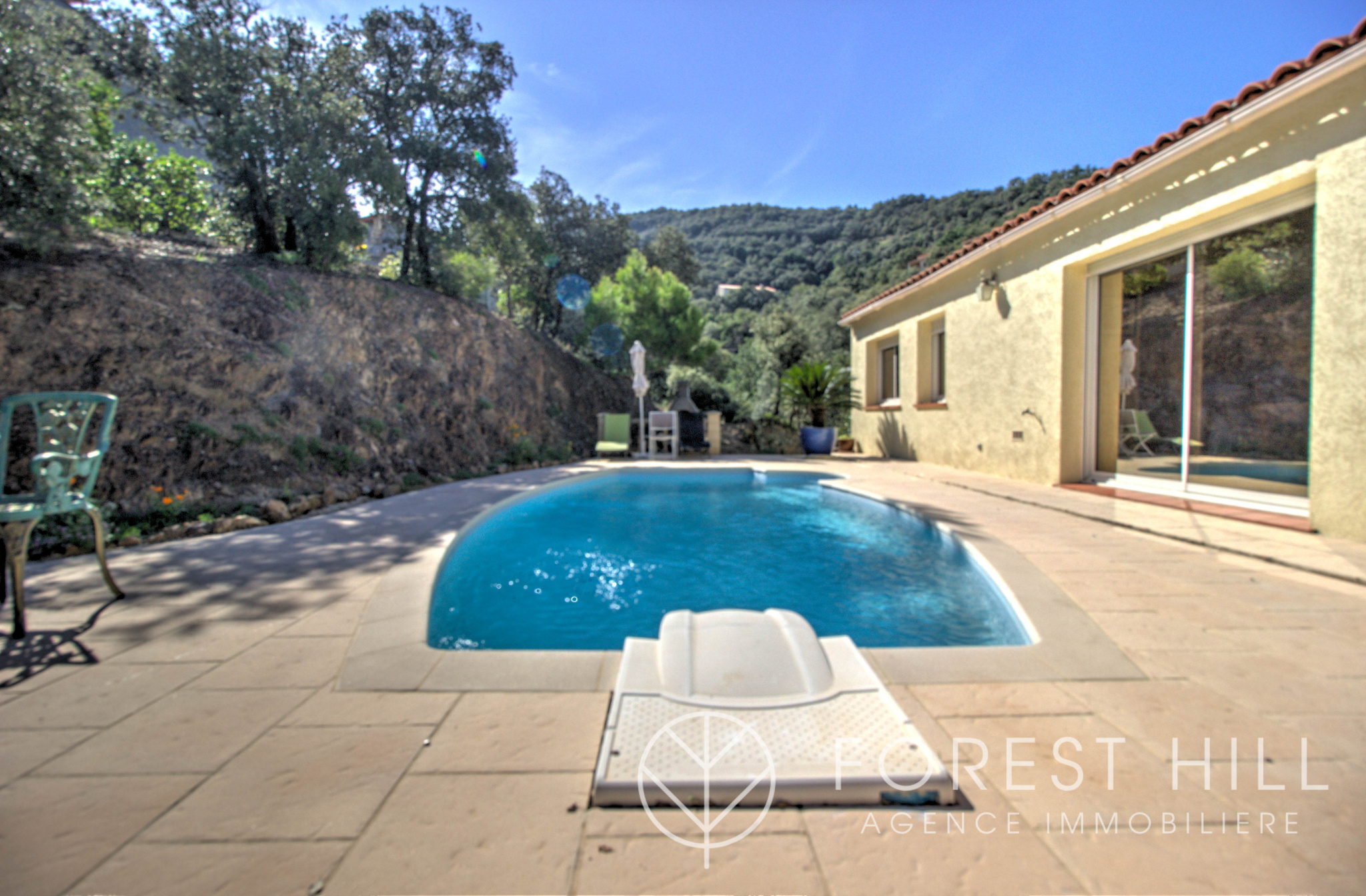 L'agence immobilière Forest Hill Céret vous propose cette charmante maison de plain-pied, nichée dans un écrin de verdure. Elle se compose d'une vaste pièce de vie lumineuse de plus de 53 m2, incluant une cuisine ouverte, ainsi que de trois belles chambres, une salle de bains et un WC séparé. Au niveau inférieur, vous découvrirez un appartement indépendant de type T3, idéal pour la location saisonnière ou pour accueillir famille et amis en toute intimité. À l'extérieur, vous profiterez d'une belle piscine avec un agréable espace de détente autour, parfait pour savourer les journées ensoleillées.