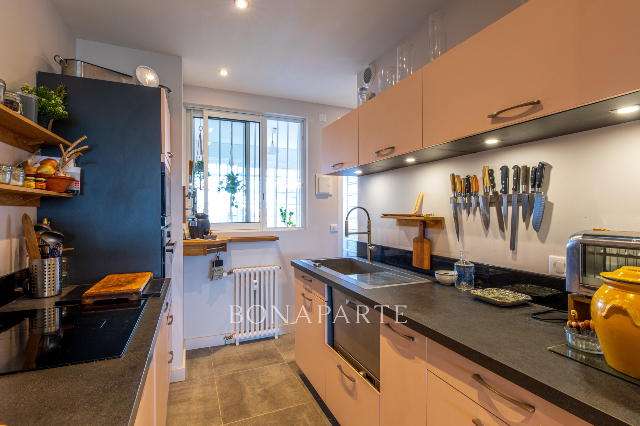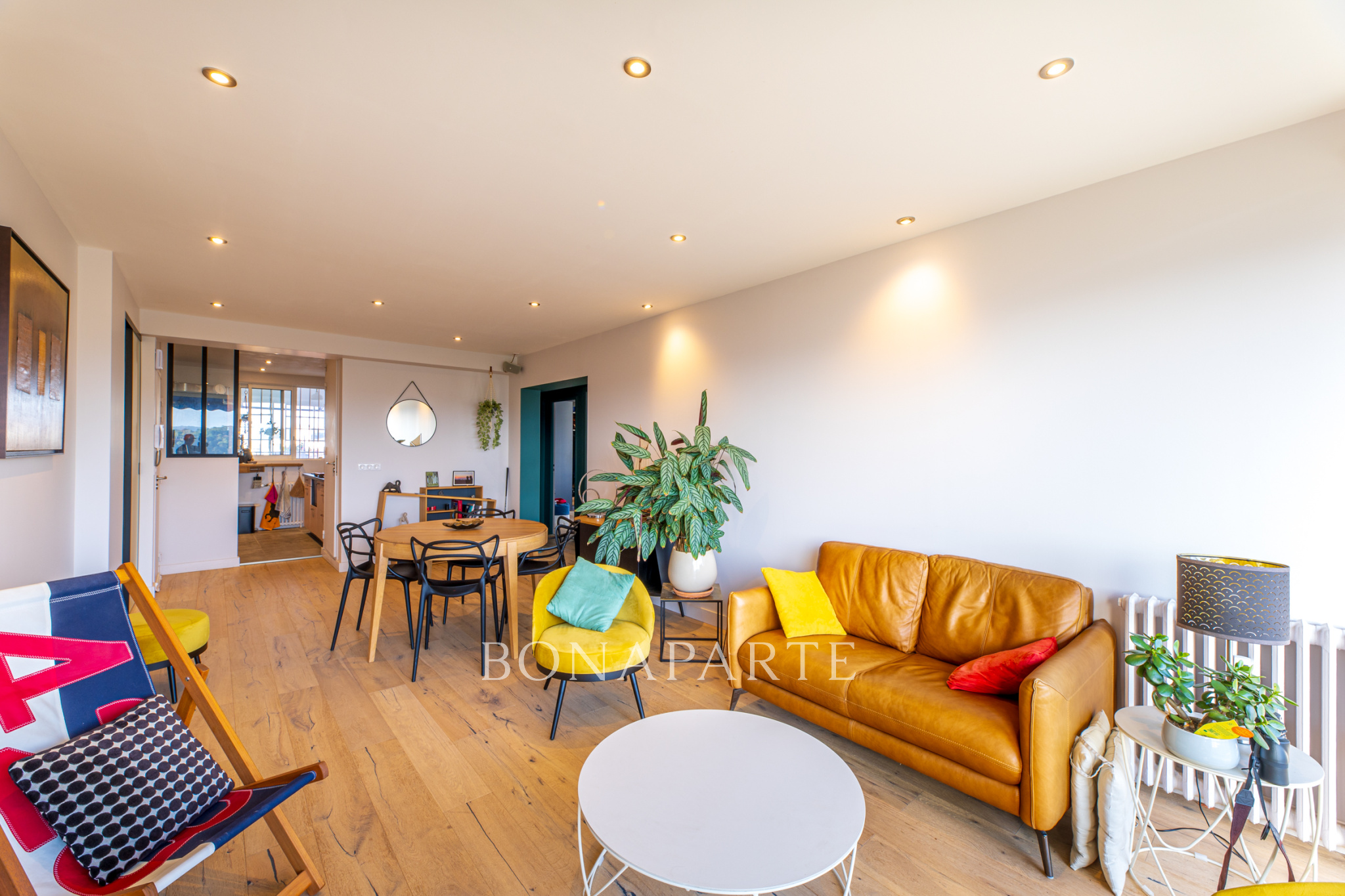 Entièrement repensé par un architecte, il offre un agencement sur mesure sans aucune perte de place (80 m2 utiles) :