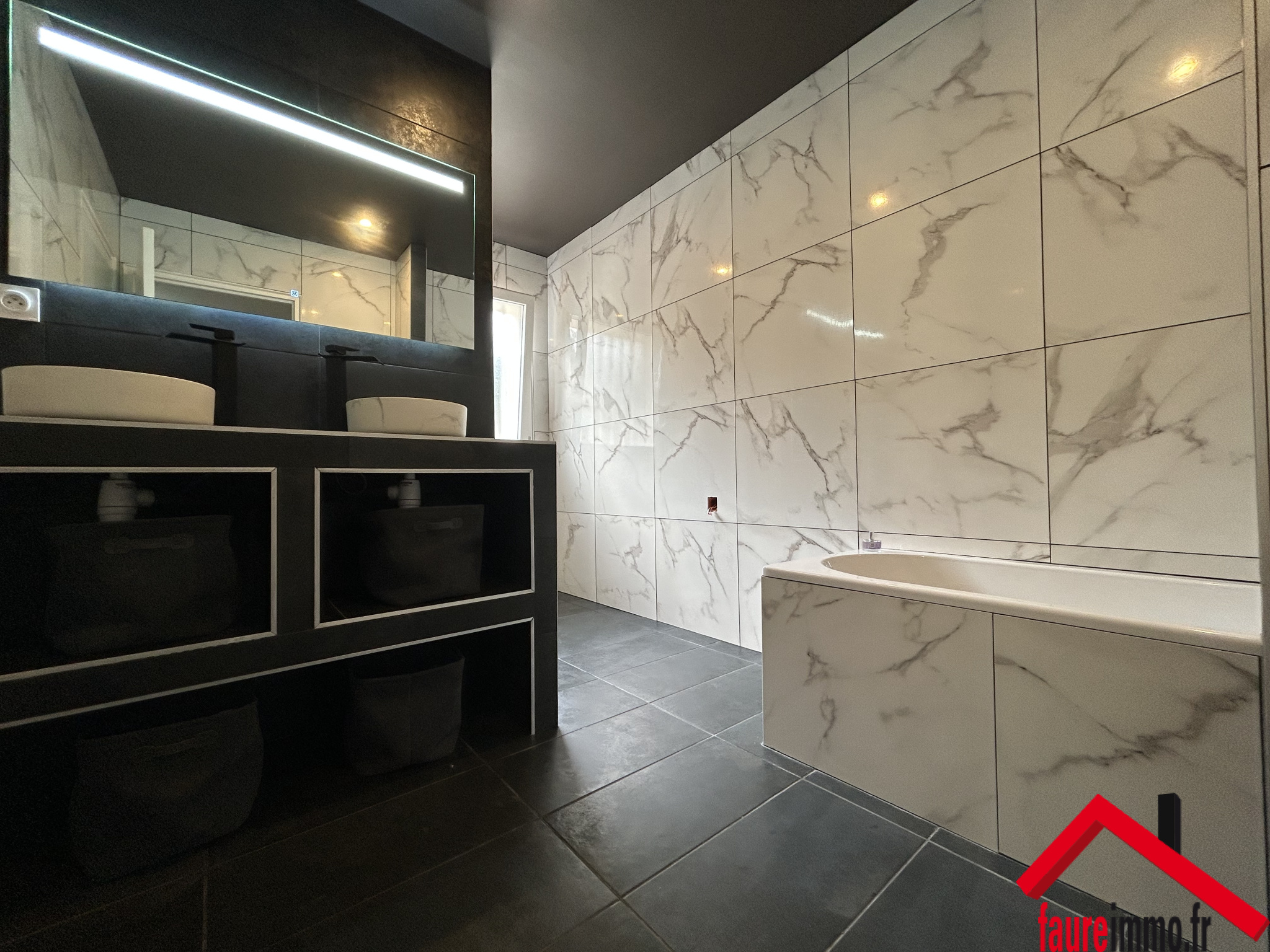 FAUREIMMO.FR : Maison d'habitation de plain pied comprenant salon/séjour, cuisine ouverte, trois chambres, salle d'eau et bain, wc, buanderie, garage, le tout sur un terrain d'environ 1300m2. CONTACT : 05 87 49 45 36 - accueil@faureimmo.fr