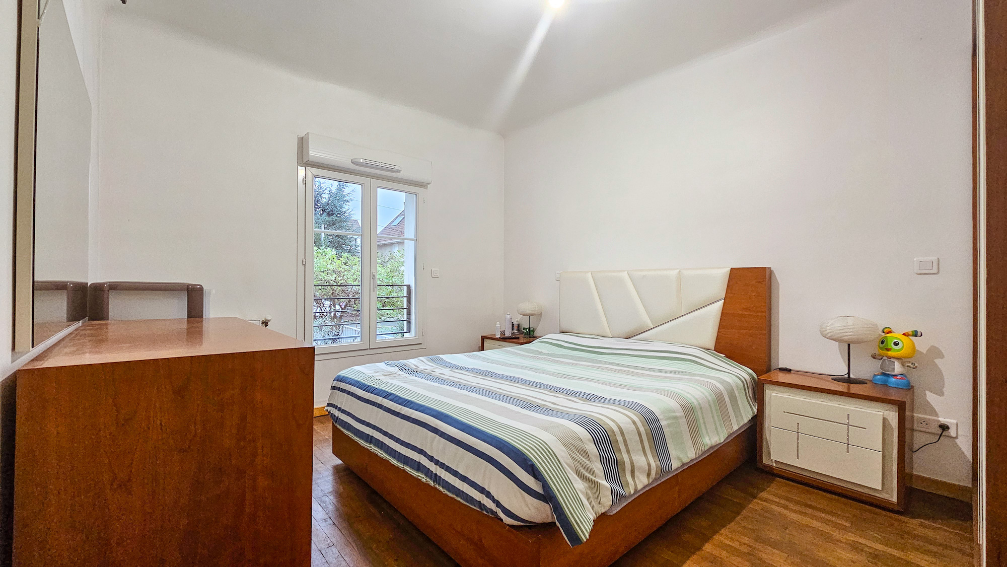 Une entrée avec un spacieux séjour, une cuisine aménagée et équipée donnant sur sa belle terrasse et son jardin sans vis-à-vis, deux chambres, une salle d'eau avec WC.