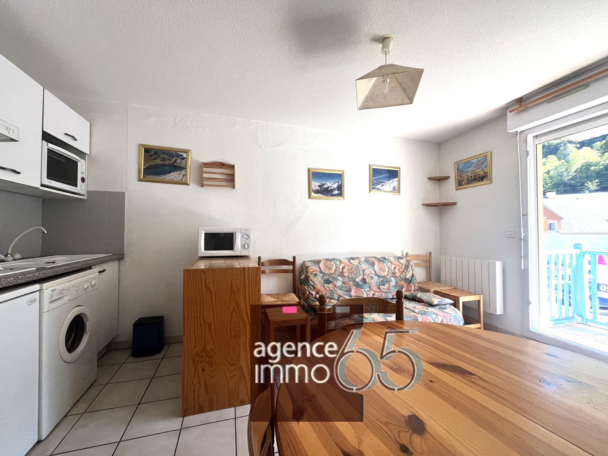 Au coeur de Luz st Sauveur, appartement composé d'une entrée desservant une pièce de vie kitchenette l'ensemble ouvert sur un balcon plein sud vue montagnes