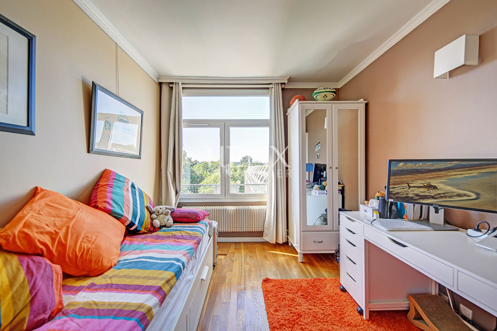 Le Vésinet, au dernier étage d'une résidence bien entretenue, un vaste appartement 5 pieces comprenant une entrée, un séjour double avec une jolie vue dégagée, une cuisine aménagée et équipée, trois chambres, une salle de bains, noombreux rangements. Un box extérieur et une cave en sous-sol completent ce bien en bon etat. Calme et sans vis-à-vis. Copropriété de 50 lots (). Charges annuelles : 3000 euros.