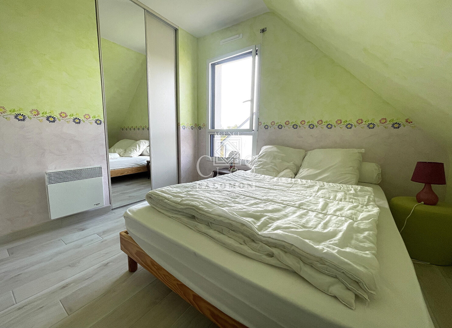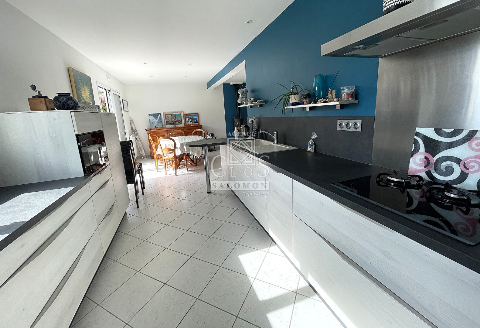 Idéalement située à seulement 450 mètres des plages de Saint-Gildas-de-Rhuys, cette charmante maison offre un cadre de vie paisible et agréable, tout en étant à 2 km des commodités locales. Édifiée sur un terrain verdoyant de 700 m², elle se compose de deux niveaux et d'un agencement optimisé pour le confort familial. Au rez-de-chaussée, vous découvrirez un salon séjour donnant sur une terrasse plein sud, une cuisine ouverte aménagée et équipée, une chambre avec placards, une salle de douche, un WC, un garage et une buanderie avec douche de retour de plage. L'étage vous propose trois chambres, une salle de bains et un WC. Ne manquez pas cette chance de réaliser votre projet en bord de mer. Contactez-nous !!!!!! (5.00 % honoraires TTC à la charge de l'acquéreur.) Copropriété de 10 lots (). Charges annuelles : 45 euros.