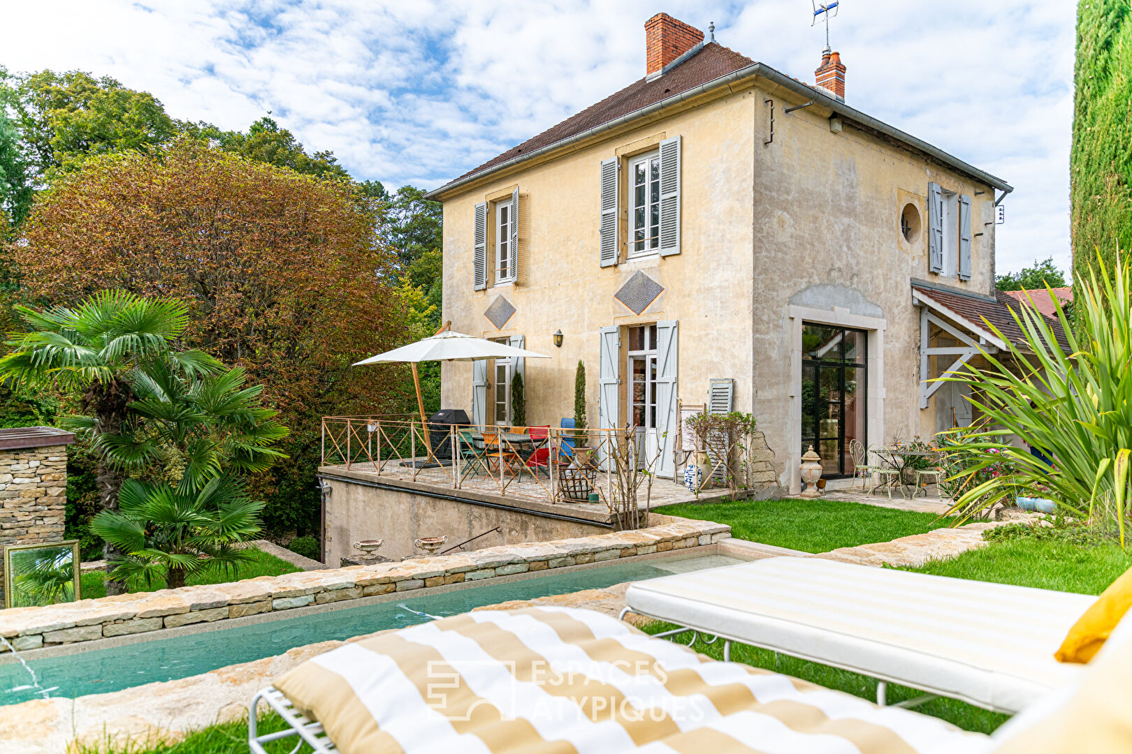 Nichée dans un écrin de verdure, cette maison au charme italien séduit par son cachet unique et son jardin exceptionnel sans aucun vis-à-vis, véritable havre de sérénité. Le jardin, sublimé par une superbe piscine en pierre, invite à la détente et à l'art de vivre méditerranéen. Au rez-de-chaussée, la maison offre une atmosphère chaleureuse avec une cuisine indépendante entièrement équipée, un vaste salon habillé d'un parquet Point de Hongrie et agrémenté d'une bibliothèque sur mesure, ainsi qu'une salle à manger baignée de lumière grâce à de belles ouvertures donnant directement sur le jardin. A l'étage, trois chambres accueillantes et une salle de bain combinant baignoire et douche composent l'espace nuit, tandis que le dernier niveau réserve la possibilité d'aménager une élégante suite parentale. En rez-de-jardin côté nord, une suite indépendante avec salon et salle de bain vient compléter l'ensemble, offrant confort et intimité. Une grande cave s'ajoute à ces prestations, idéale pour les amateurs de beaux espaces de rangement. Cette demeure conjugue élégance et authenticité, mariant le charme de l'ancien au confort contemporain, dans un cadre de vie rare et privilégié. Enfin, il est possible d'acquérir en supplément une maison indépendante actuellement exploitée en chambres d'hôtes, composée de quatre suites et d'une salle de petit-déjeuner, offrant un potentiel immédiat d'activité ou un espace supplémentaire pour accueillir famille et invités. DPE : Consommation énergie primaire : D (189 kWh/m2/an) émissions de gaz à effet de serre D (37 kgCO2/m2/an). Les informations sur les risques auxquels ce bien est exposé sont disponibles sur le site : https://errial.georisques.gouv.fr/ pour les zones concernées. Camille Mêlé Agent commercial EI RSAC 891592990 DIJON - 06.83.92.01.22 Camille MELE (EI) Agent Commercial - Numéro RSAC : 891592990 - DIJON.