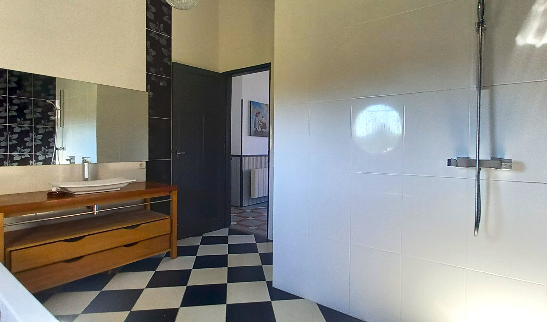 Au centre, belle maison de ville de 200 m² avec piscine, composée en rez de chaussée d'une double entrée desservant une cuisine ouverte sur séjour, une chambre, une salle de bains avec douche, un wc et à l'étage, un palier desservant une cuisine ouverte sur séjour, trois suites parentales, un wc et un cellier. Cave semi enterrée de 96 m² avec local technique pour la piscine et une douche/wc. Abris pour une voiture, le tout sur 908 m² de terrain constructible. A découvrir. (5.26 % honoraires TTC à la charge de l'acquéreur.)