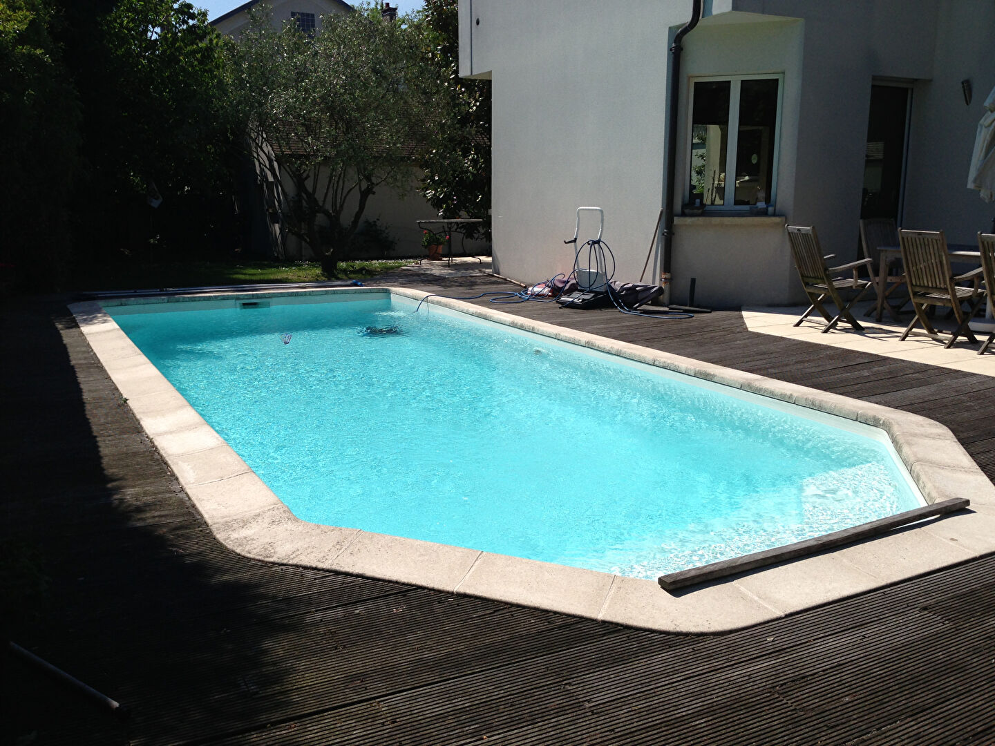 Réf 8062 LE RAINCY, secteur résidentiel, grande villa contemporaine de plus de 300 m2 sur un terrain de 950 m? En rez-de-chaussée, entrée, belle pièce de réception d'environ 90 m ouvrant sur terrasse et piscine, grande cuisine équipée avec cellier, un bureau, au premier étage, trois grandes chambres avec chacune leurs salles d'eau, buanderie, au deuxième, une chambre, salle de bain et une grande pièce. Sous-sol total, garage indépendant pour deux voitures. Très beaux volumes.