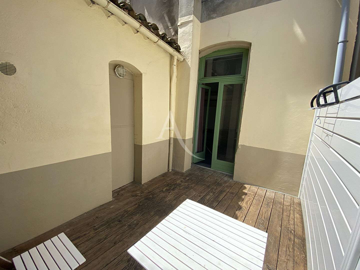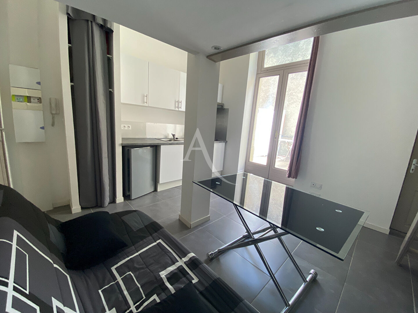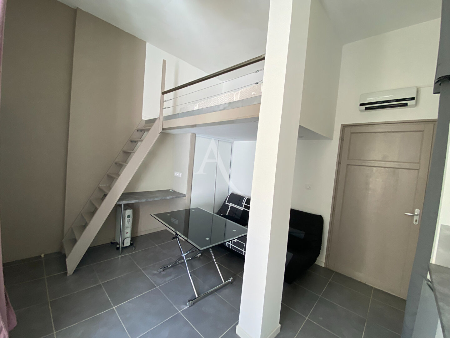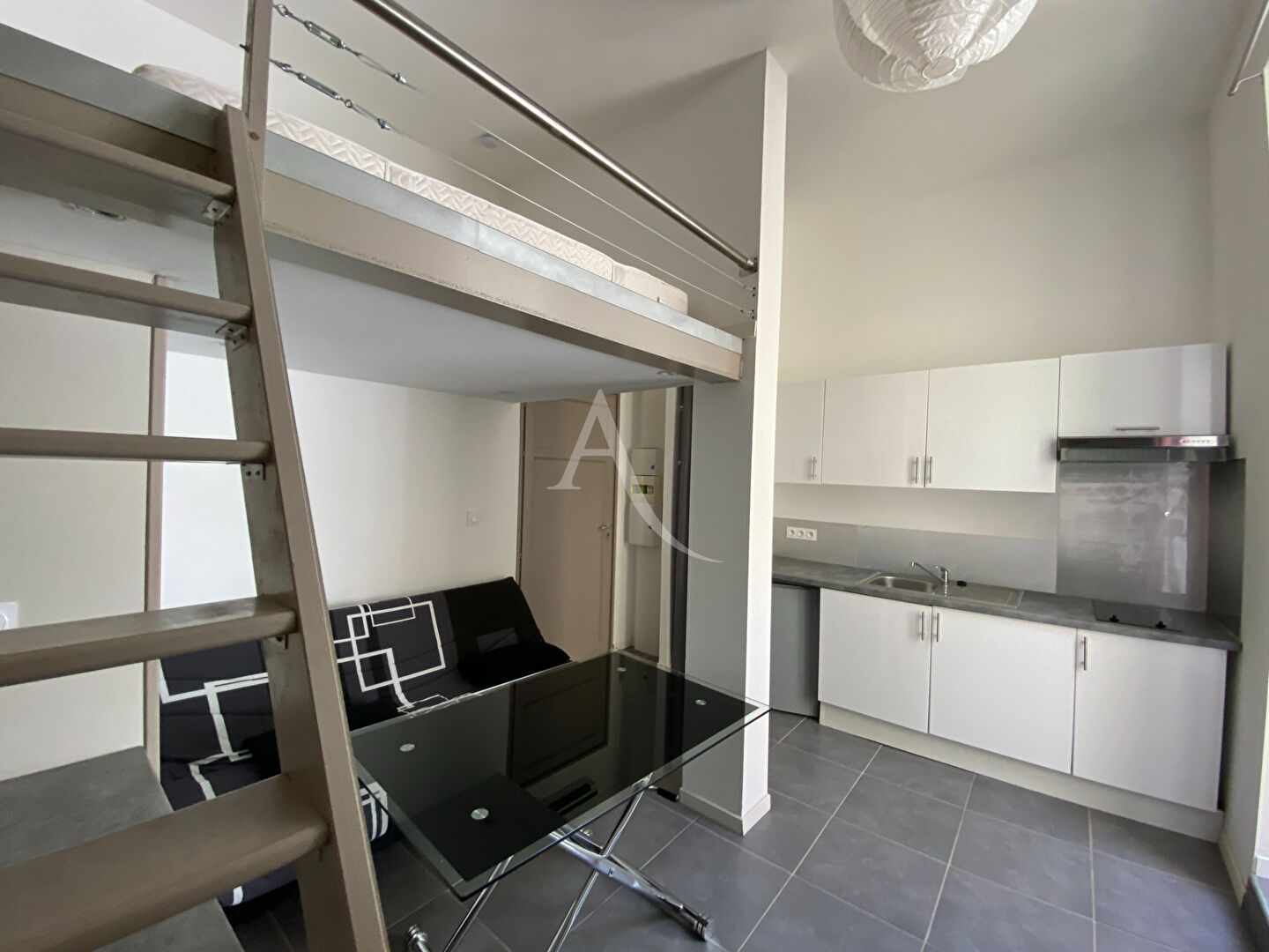 Disponible le 19 Janvier 2025, appartement STUDIO au 1er étage d'un immeuble, centre ville, comprenant séjour avec coin cuisine aménagée et équipée, mezzanine, salle d'eau, wc et courette privative.