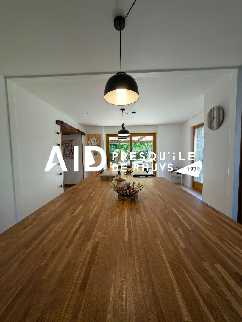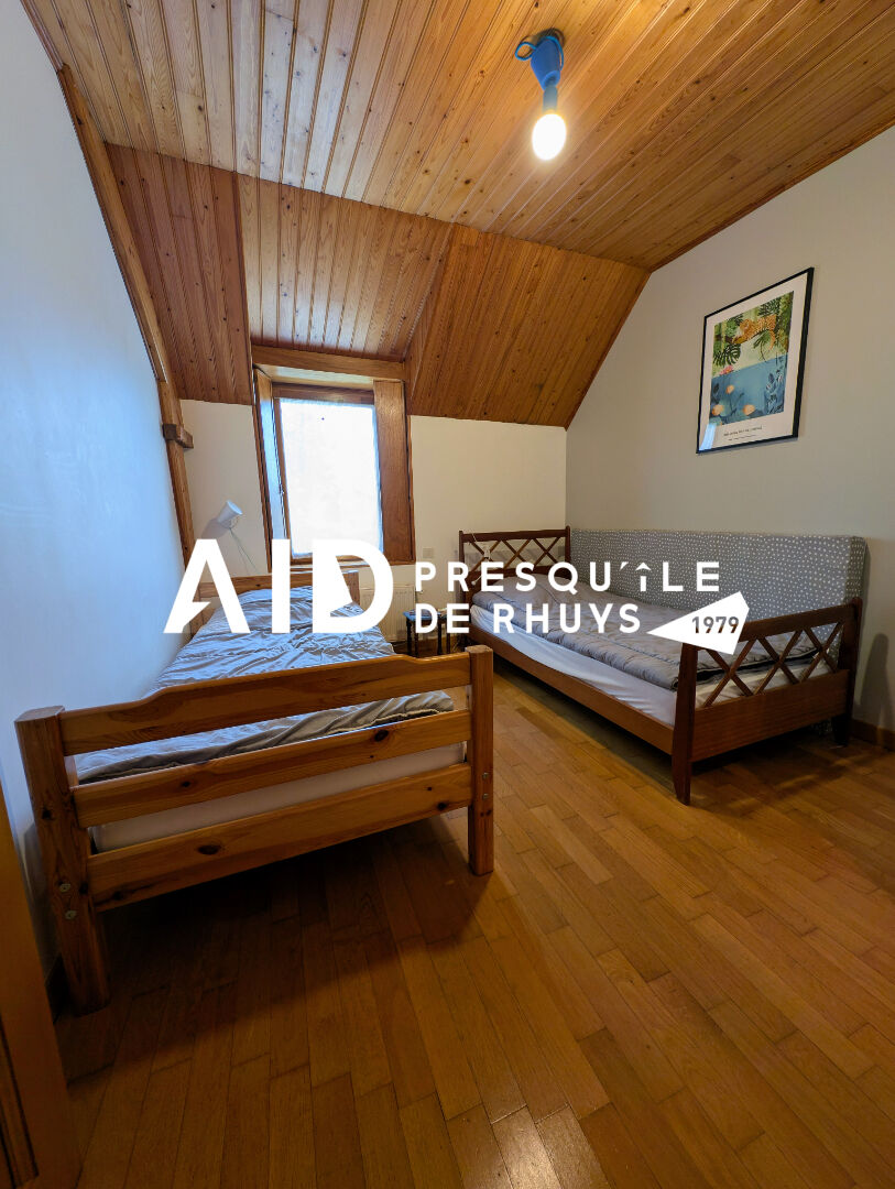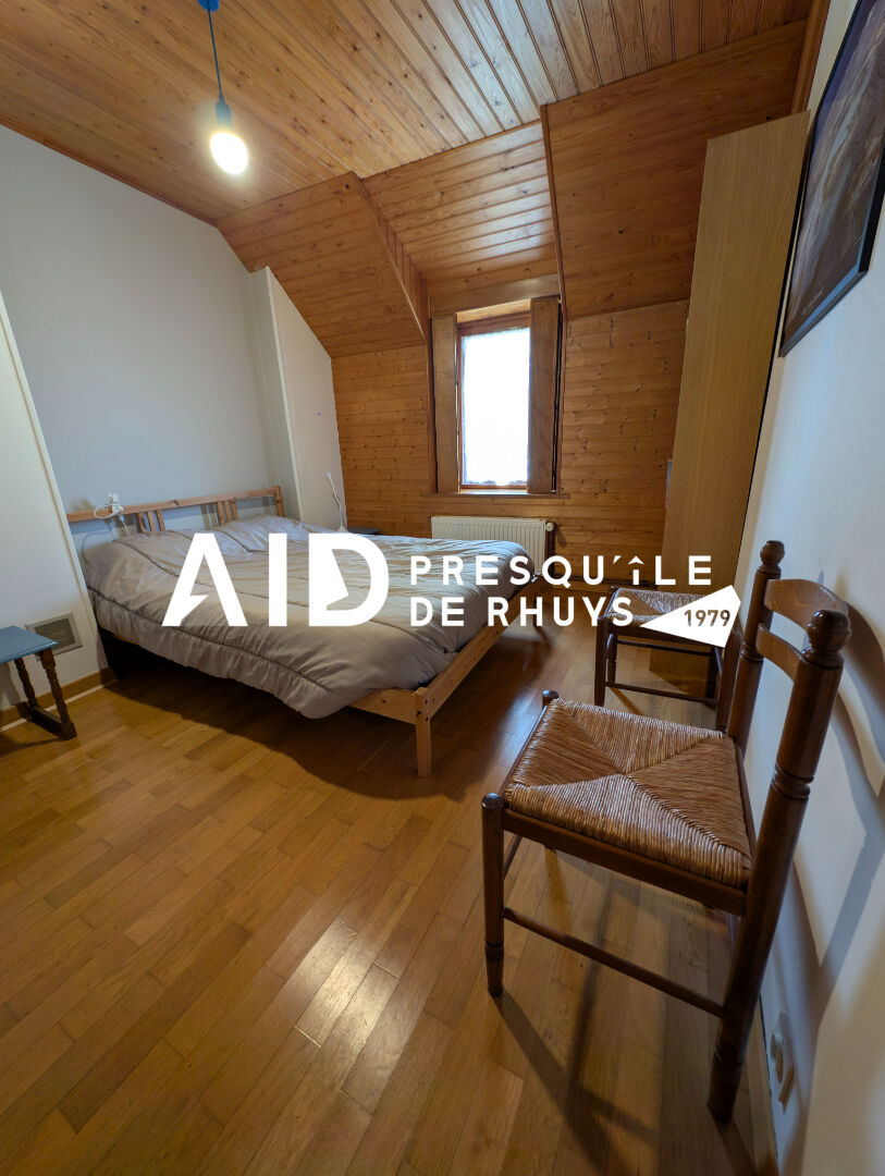 Idéalement située au coeur de la Presqu'île de Rhuys, cette maison familiale de caractère bénéficie d'un emplacement privilégié. Vous rejoindrez le Golfe du Morbihan par les pistes cyclables. Elle offre au rez-de-chaussée une pièce de vie chaleureuse avec insert, une cuisine aménagée et équipée conçue pour accueillir de grandes tablées, une chambre, une salle de bains avec WC et coin buanderie, ainsi qu'une cave. A l'étage, vous trouverez cinq chambres avec rangements intégrés, une salle de bains avec douche et un WC indépendant. A l'extérieur, le jardin clos et arboré dispose d'un cabanon aménagé en atelier, parfait pour les bricoleurs ou les amoureux du jardinage. Une maison accueillante et pratique, parfaite pour une vie de famille au bord du Golfe. (4.32 % honoraires TTC à la charge de l'acquéreur.)