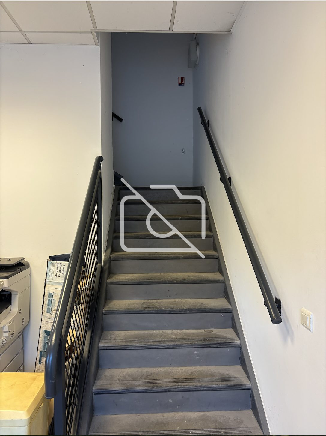 Plan & photos : un plan et des vues intérieures figurent au dossier (voir pages 23). On y distingue l'atelier en RDC, un escalier vers la mezzanine bureaux, et un sol béton en atelier (constat visuel, valeurs techniques non indiquées sur le plan)
