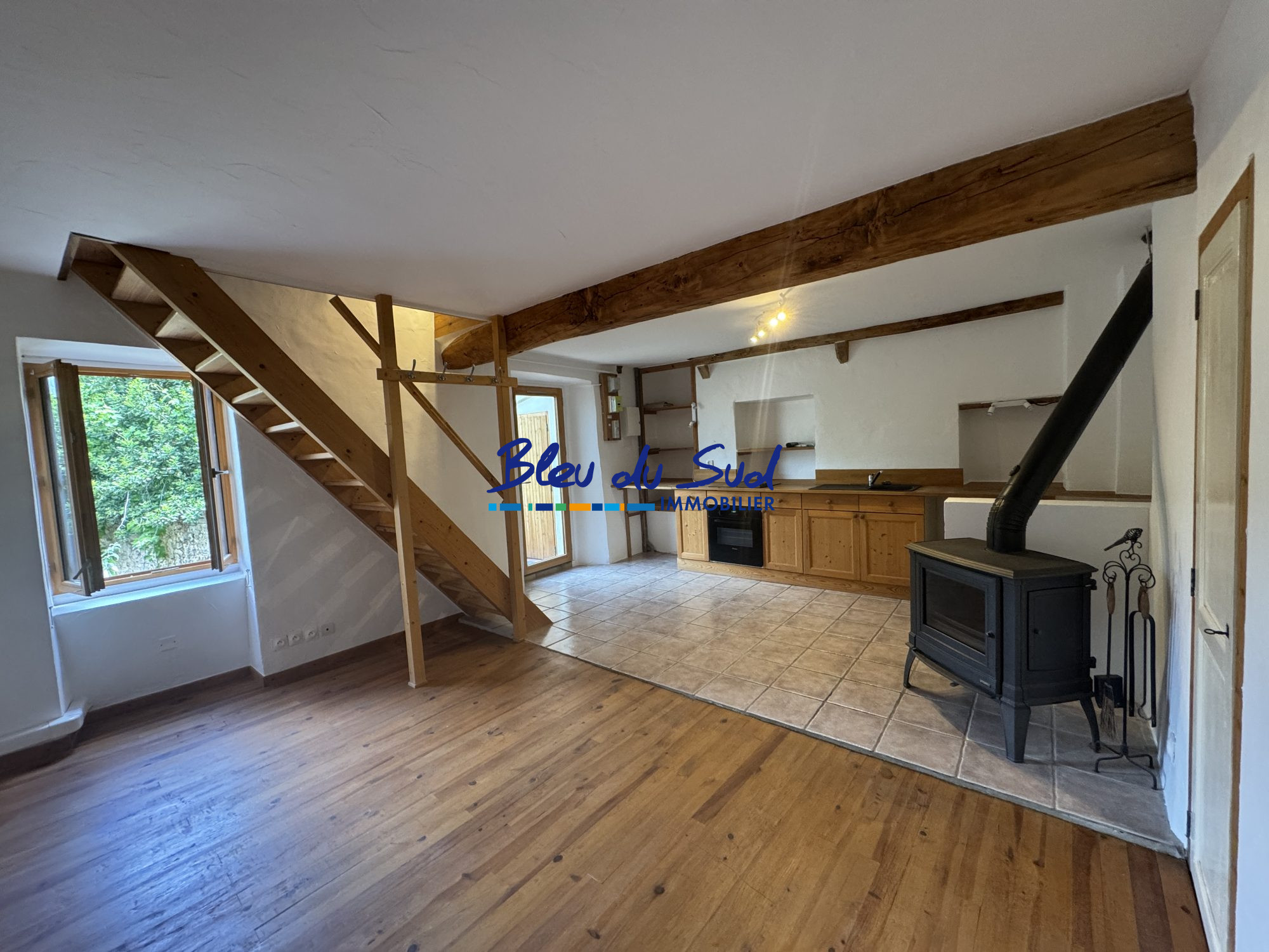 -Au premier étage : une cuisine aménagée, ouverte sur le salon/séjour avec son beau poêle à bois.