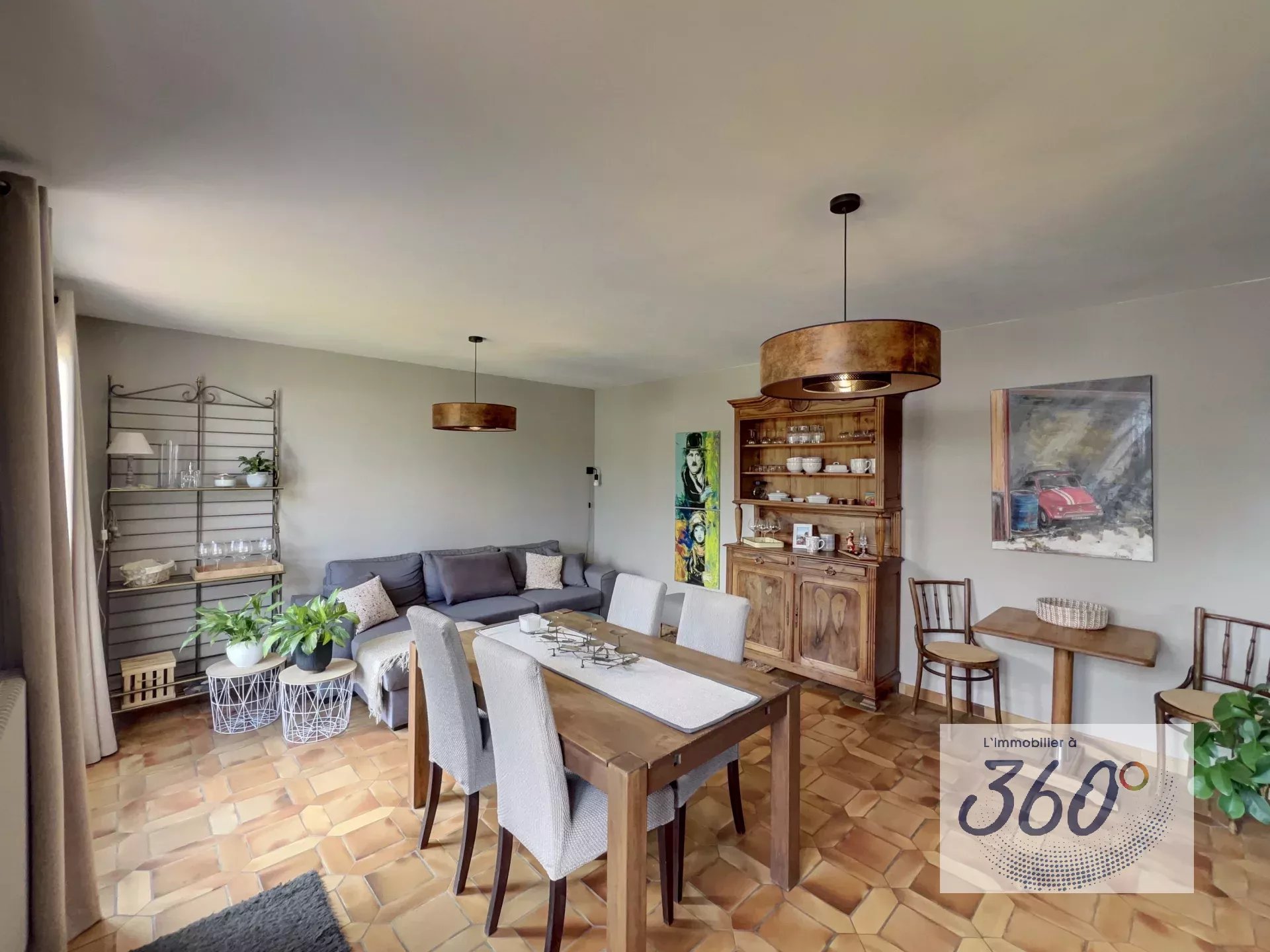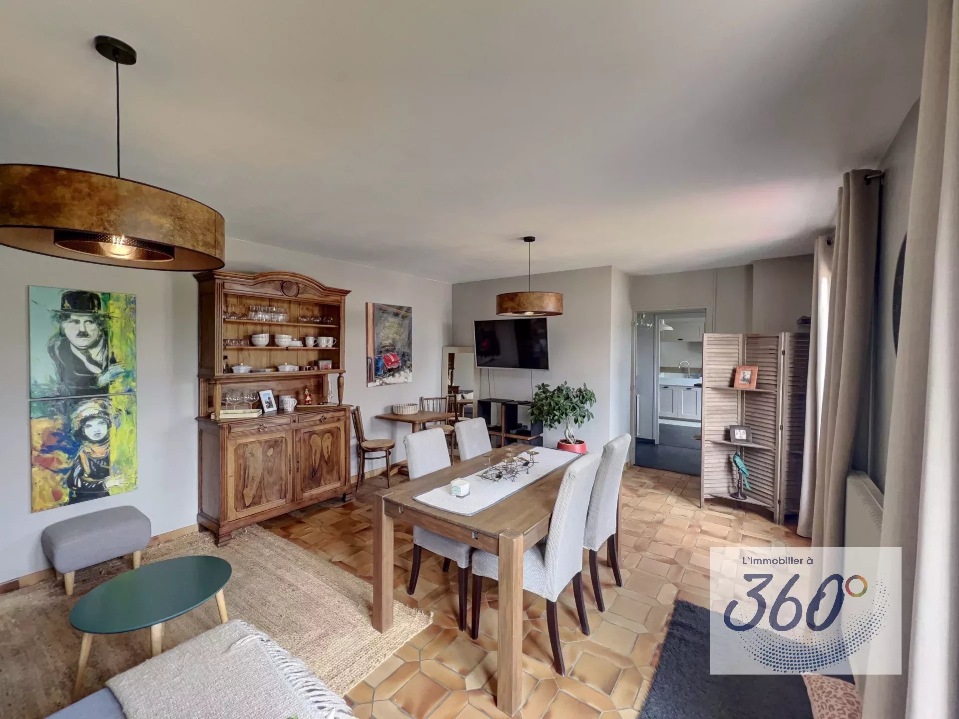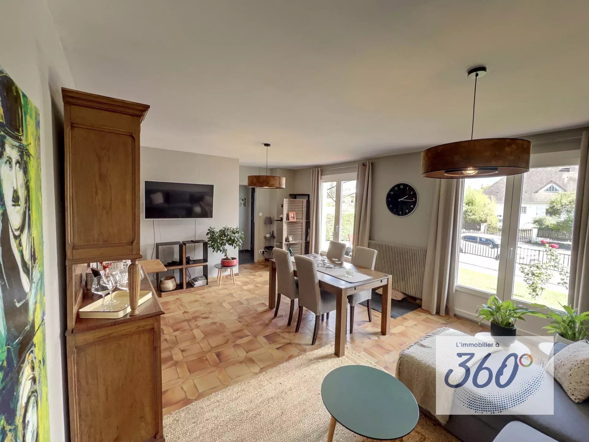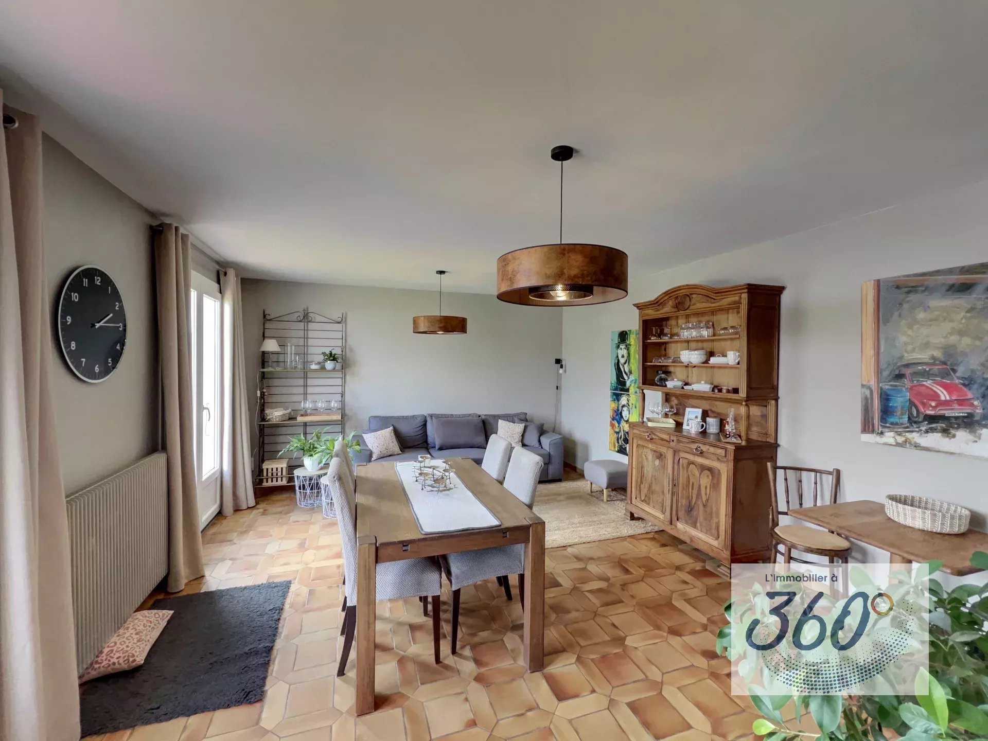 Séjour spacieux et baigné de lumière, ouvrant sur l'extérieur.