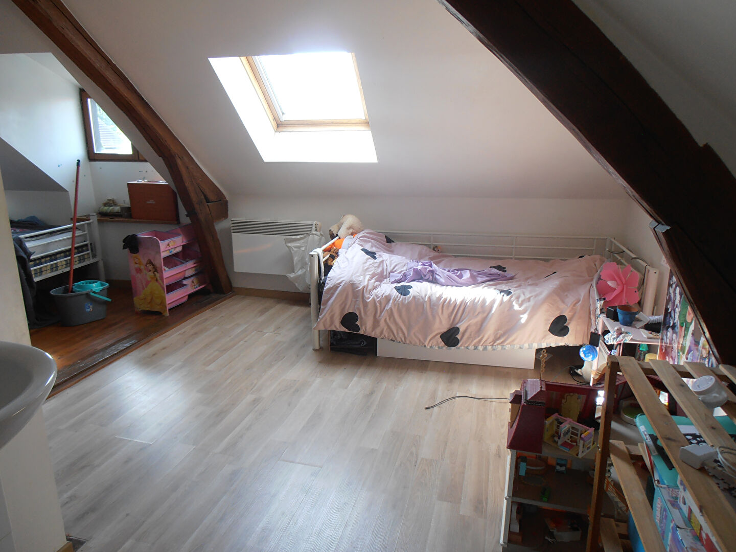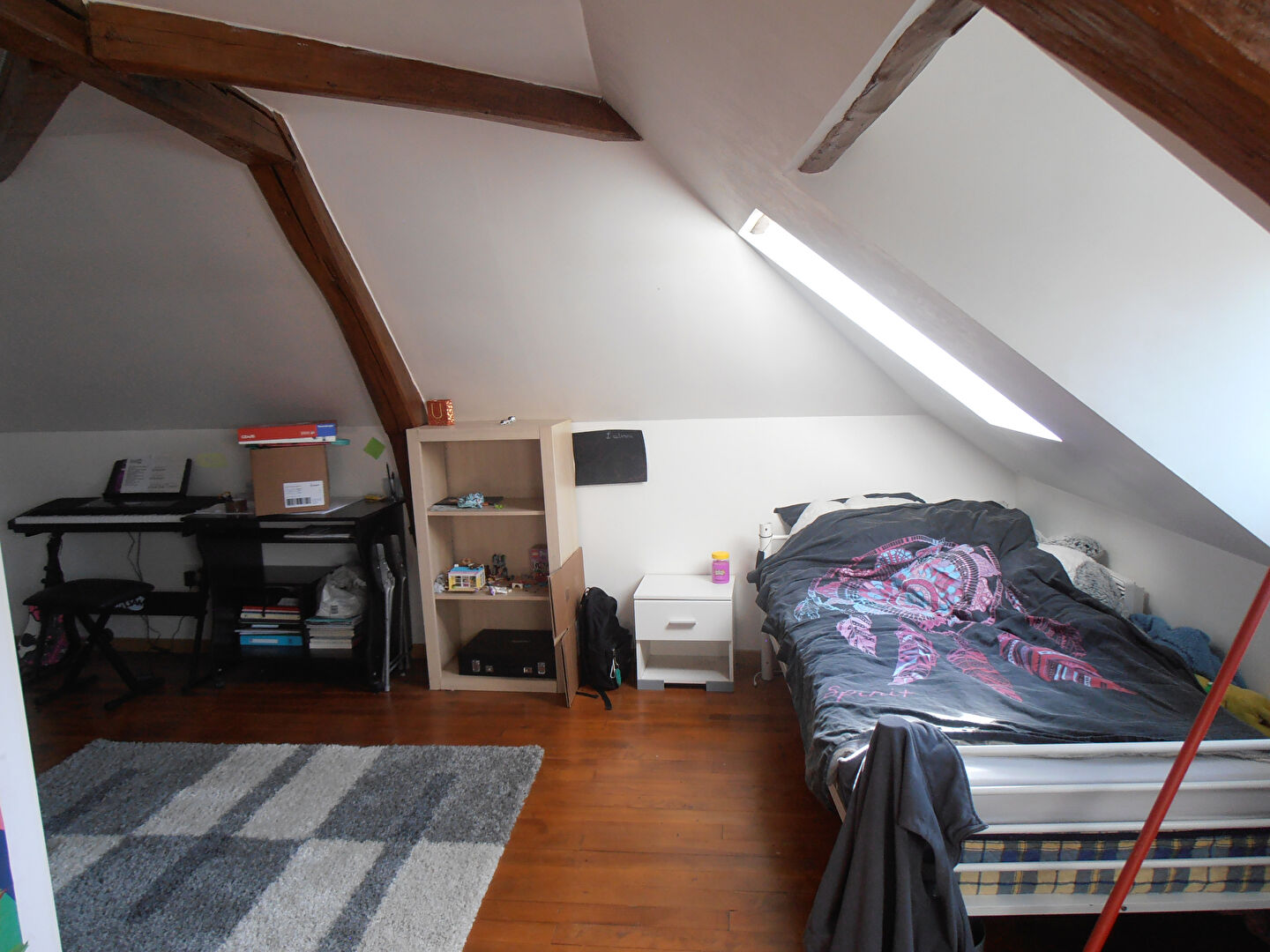 cuisine aménagée, beau séjour double, wc avec lave -mains. Au premier étage: palier desservant trois chambres, salle d'eau et partie grenier. Au second étage: grande chambre avec point d'eau et wc. C/C fuel.Jardin avec possibilité de garer 3 voitures, l'ensemble sur 700 m environ.Libre au 1er novembre 2025.Loyer: 1100
