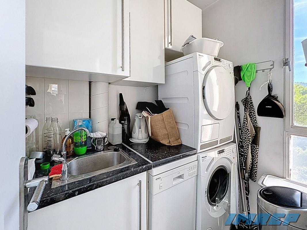salle de bain et WC séparé, 2 chambres une salle d'eau avec WC. placards et dressing. Double vitrage. Sol en travertin. porte blindée.Pour compléter l ensemble, il y a 2 caves avec 2 places de parking.Copropriété de 150 lots (Pas de procédure en cours).Charges annuelles : 2992