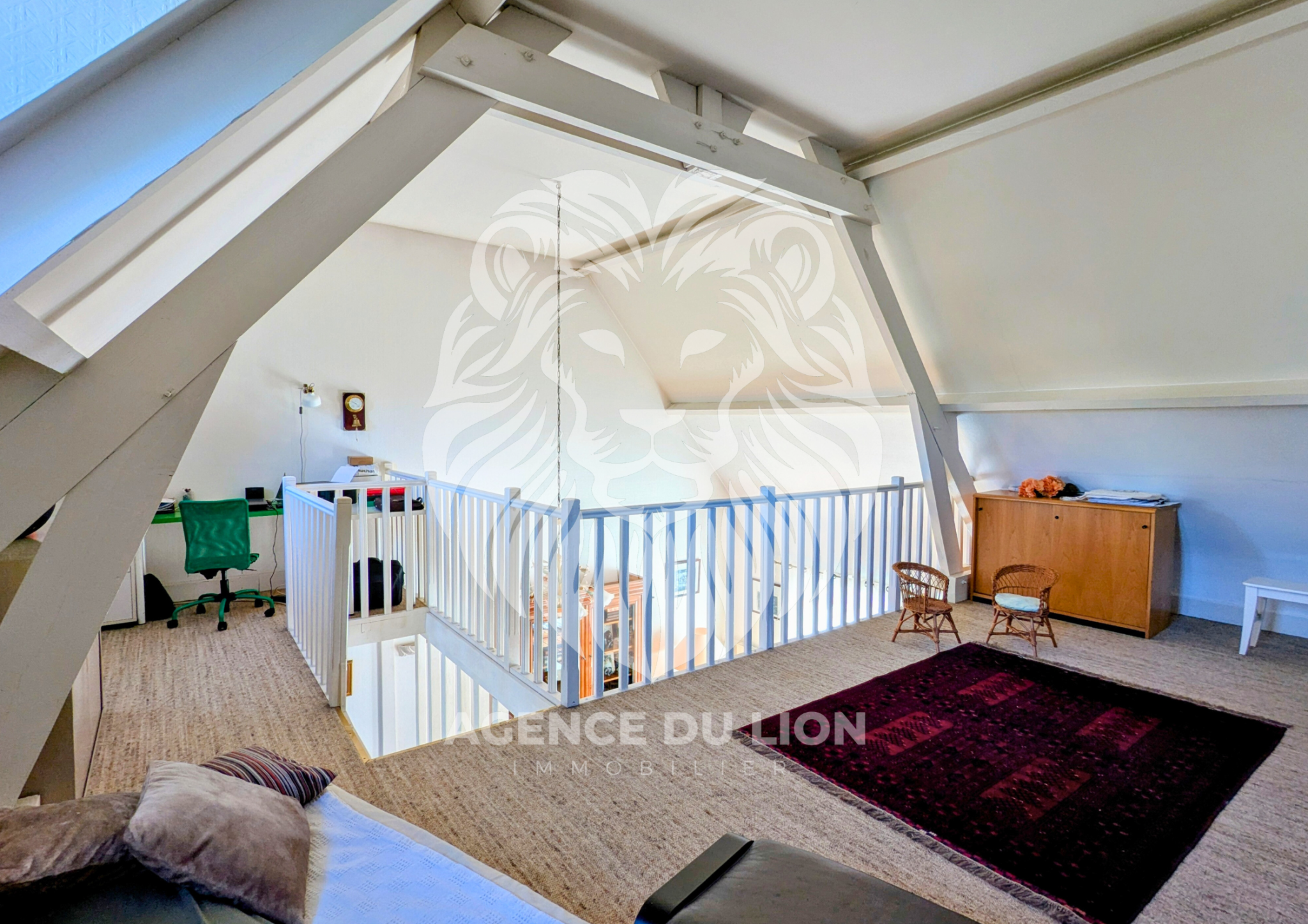 Vaste Séjour: Un salon/salle à manger de 44 m2 baigné de lumière, agrémenté d'une cheminée chaleureuse et surplombé par une mezzanine de 20 m2 parfaite pour un bureau ou un coin lecture.