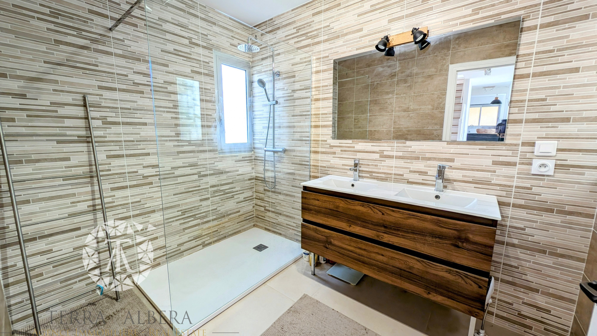 Incroyable villa avec piscine et vues époustouflantes sur le lac de la Raho et le Canigou, d'une surface habitable de 122 m2 et une surface utile de 169 m2.