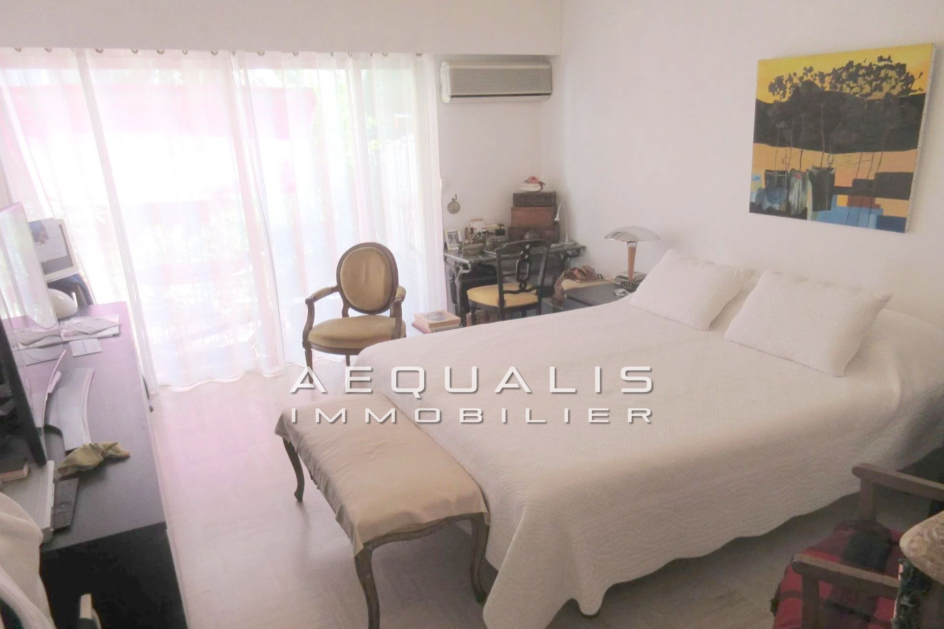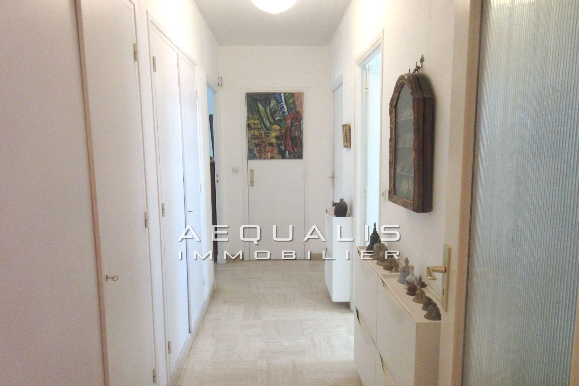Saint-Laurent-Du-Var, centre-ville (avenue du Général de Gaulle à proximité de l'Intermarché) dans une copropriété construite en 1970 (23 lots d'habitation), spacieux appartement trois pièces en rez-de-jardin, proposant une superficie de 89m² (ainsi que 3m² de placards avec marche, non comptabilisés dans la superficie ''loi carrez''). Le bien se compose d'un hall d'entrée, d'un séjour de 27m², d'une grande cuisine indépendante de 13m², de deux chambres de respectivement 12 et 15m² (dont une climatisée), d'une salle de douches et d'un w-c indépendant. Le séjour, la cuisine et l'une des chambres, sont attenants au rez-de-jardin de 100m², exposé plein sud. Une cave et un parking sont également associés à ce bel appartement à visiter dans les plus brefs délais !!!