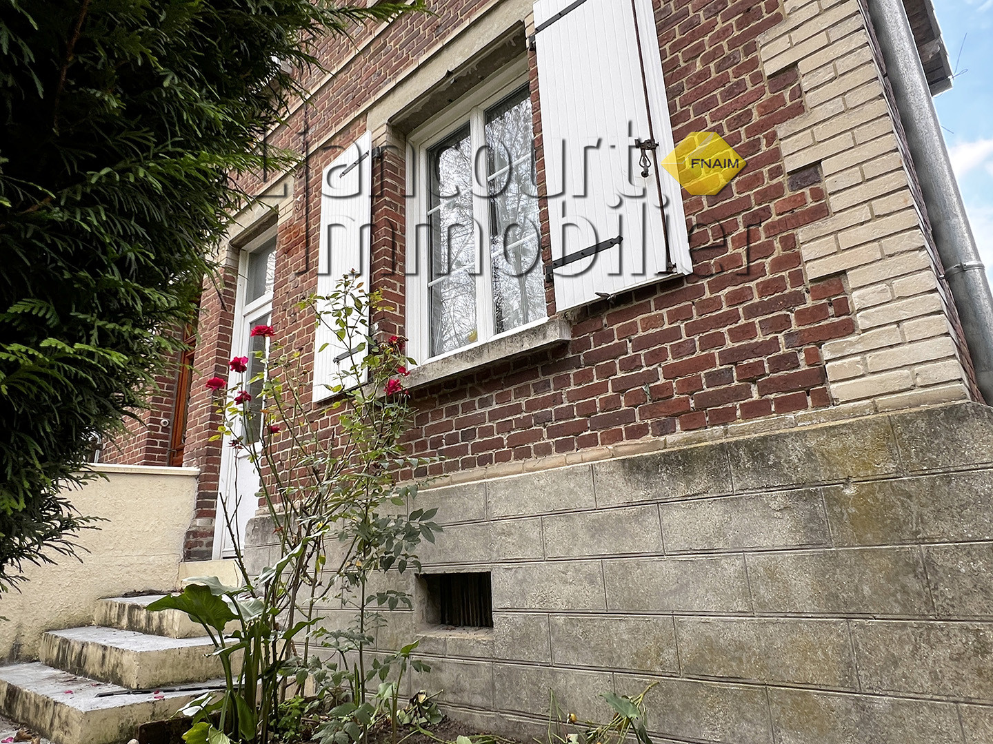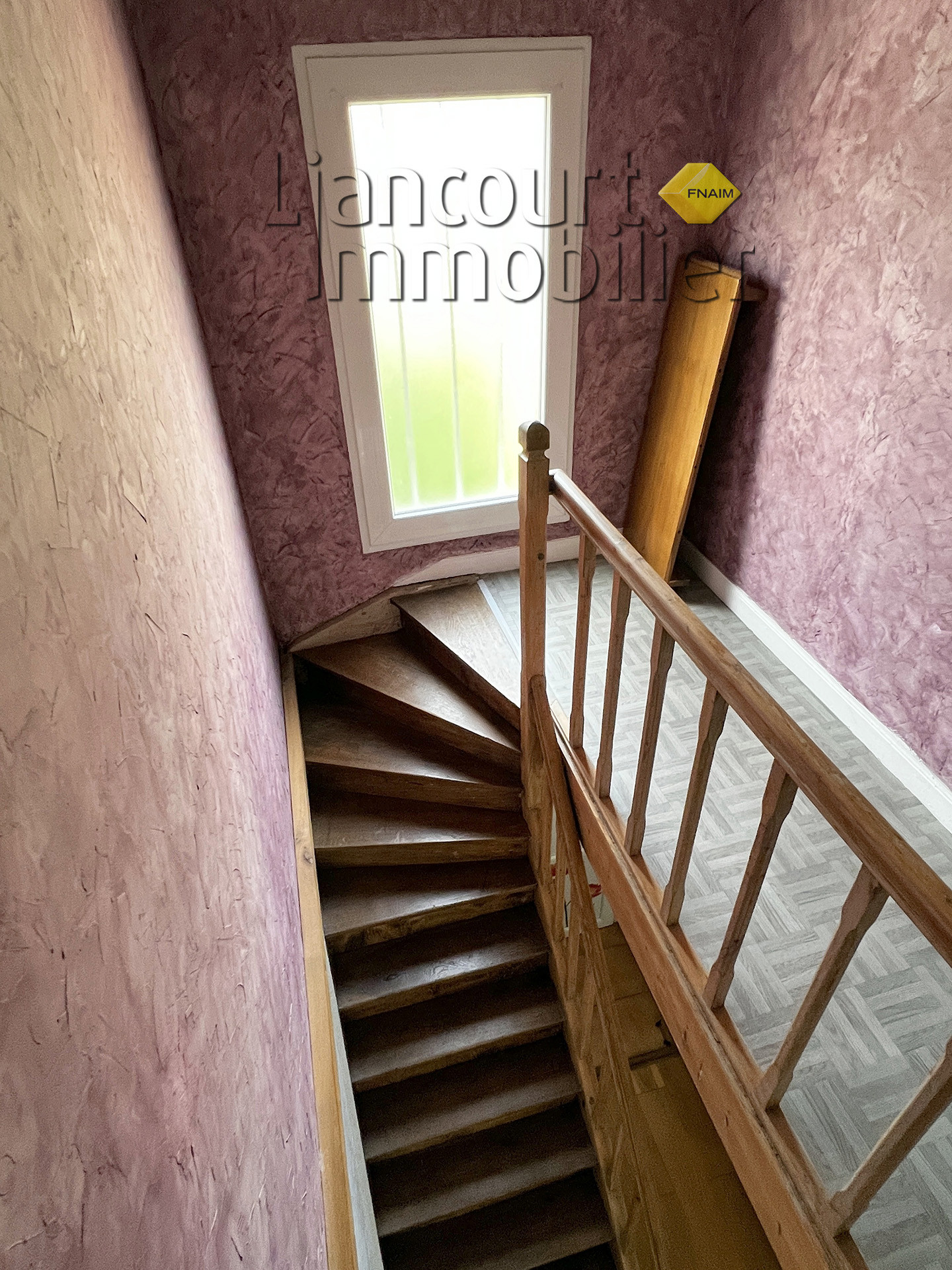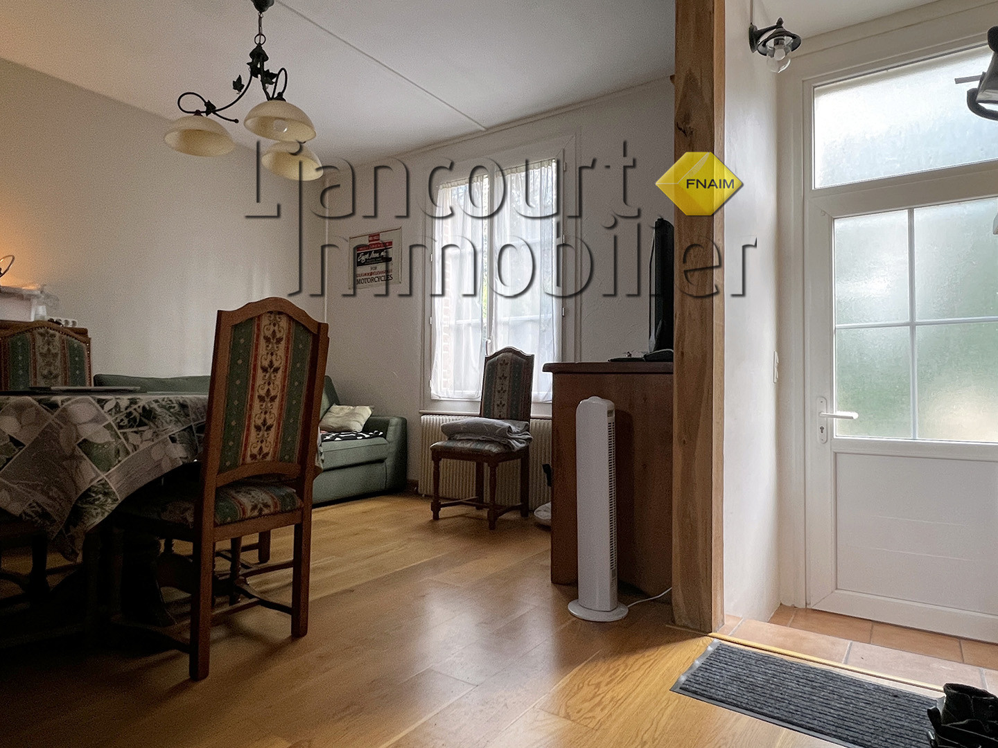 Maison de ville mitoyenne d'un coté offrant au rez de chaussée, entrée, cuisine aménagée avec piano de cuisson, séjour, wc, au 1er étage: 2 chambres et une salle d'eau, au deuxième étage sous comble une grande pièce aménagée partiellement , cave, jardinet devant et jardin derrière avec accès plusieurs VL, CC fuel, gare SCNF facilement accessible.