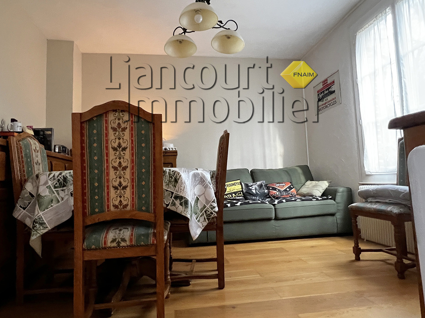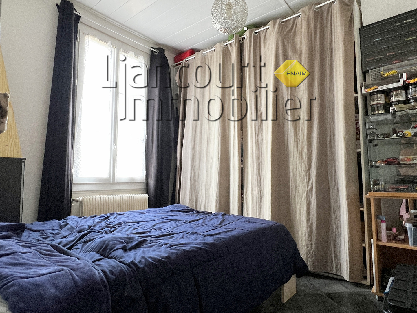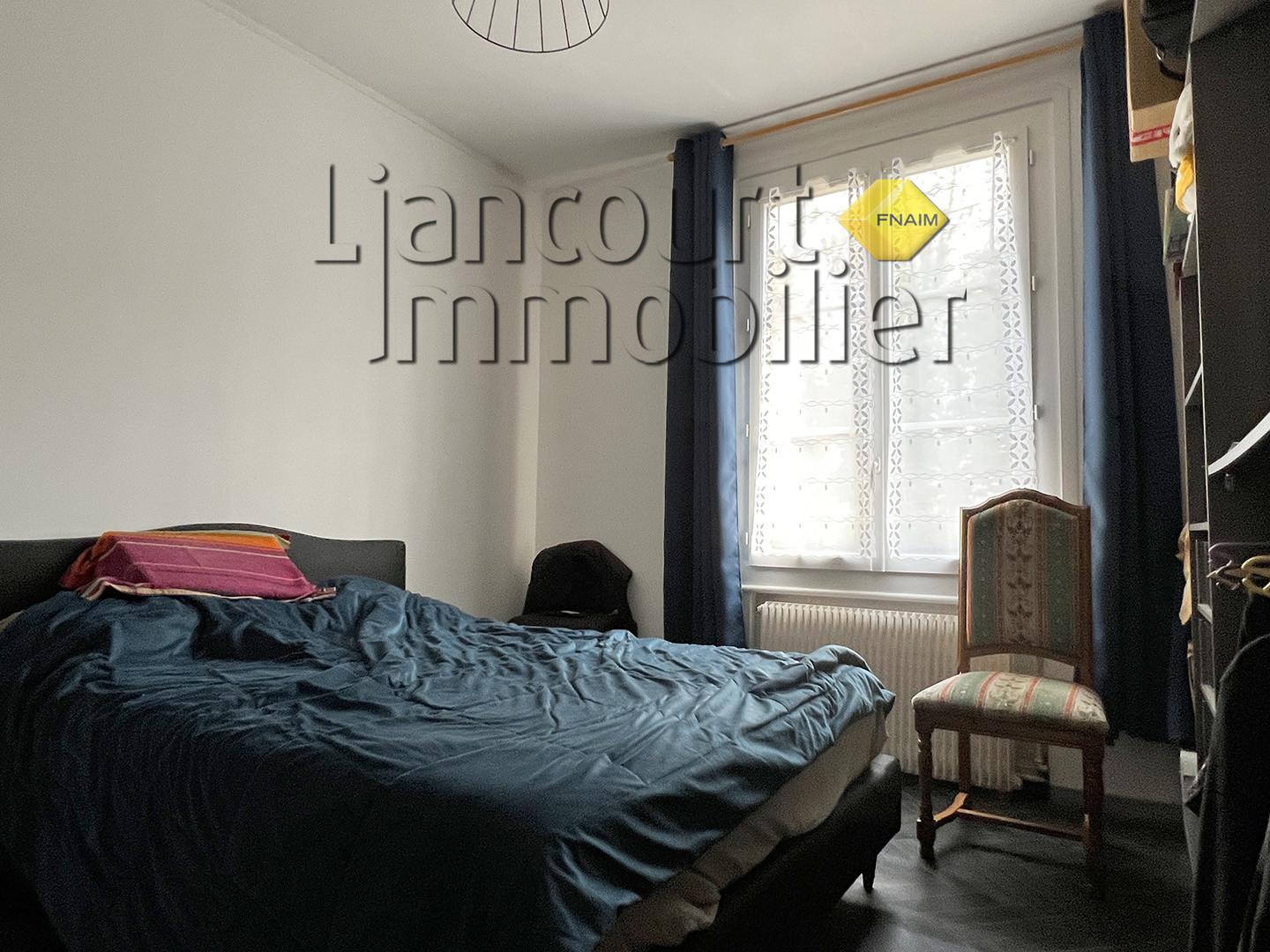 Maison de ville mitoyenne d'un coté offrant au rez de chaussée, entrée, cuisine aménagée avec piano de cuisson, séjour, wc, au 1er étage: 2 chambres et une salle d'eau, au deuxième étage sous comble une grande pièce aménagée partiellement , cave, jardinet devant et jardin derrière avec accès plusieurs VL, CC fuel, gare SCNF facilement accessible.