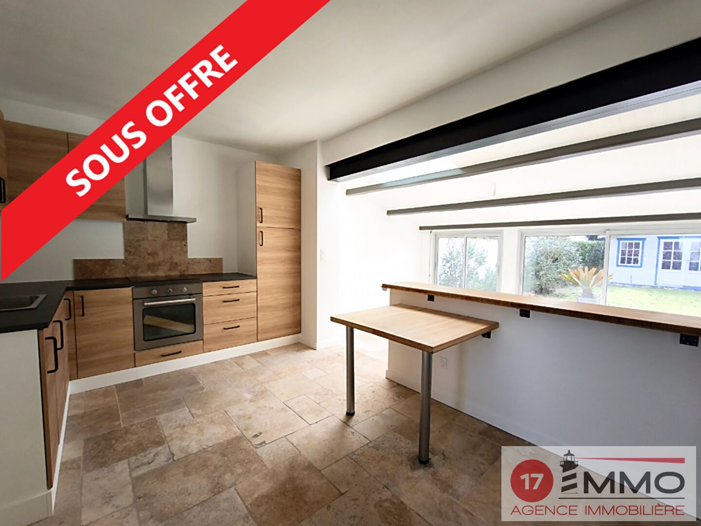 SOUS OFFRE ACCEPTEE !!! EXCLUSIVITÉ !!! 17 IMMO vous présente une jolie maison de plain-pied proche des commodités et des commerces. Ce bien rénové est composé comme suit : Un bel espace de vie avec cuisine aménagée et équipée, une salle de bains avec douche et baignoire et 2 chambres, Double vitrage, électricité neuve, nombreux aménagements récents. Elle est située dans un quartier très calme, sans soucis de stationnement et avec accès rapide au centre. Terrain de 517m² avec