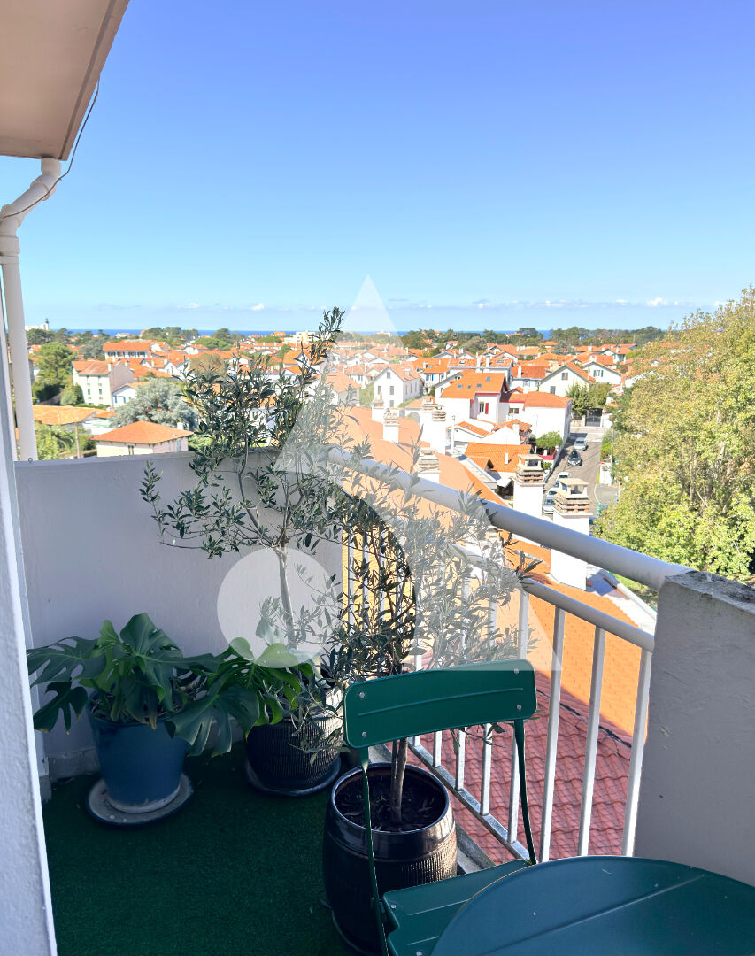 Appartement rénové vue océan Biarritz Larochefoucauld / Aguilera Au 5ème et dernier étage avec ascenseur d'une résidence récemment ravalée, découvrez ce 3 pièces rénové avec goût. Séjour double de 40 m² avec balcon, cuisine équipée, 2 chambres, salle d'eau et WC séparés. Vue dégagée sur les toits, le phare et l'océan depuis toutes les pièces. Résidence calme à 1,5 km des plages, proche commerces, écoles et navette gratuite pour le centre-ville. Un extérieur et une cave de 5 m² complètent ce bien. Stationnement libre sécurisé. En sus : un garage fermé de 21 m² avec porte motorisée. Copropriété de 88 lots - dont 36 lots habitation. (Pas de procédure en cours). Charges annuelles : 1674 euros.