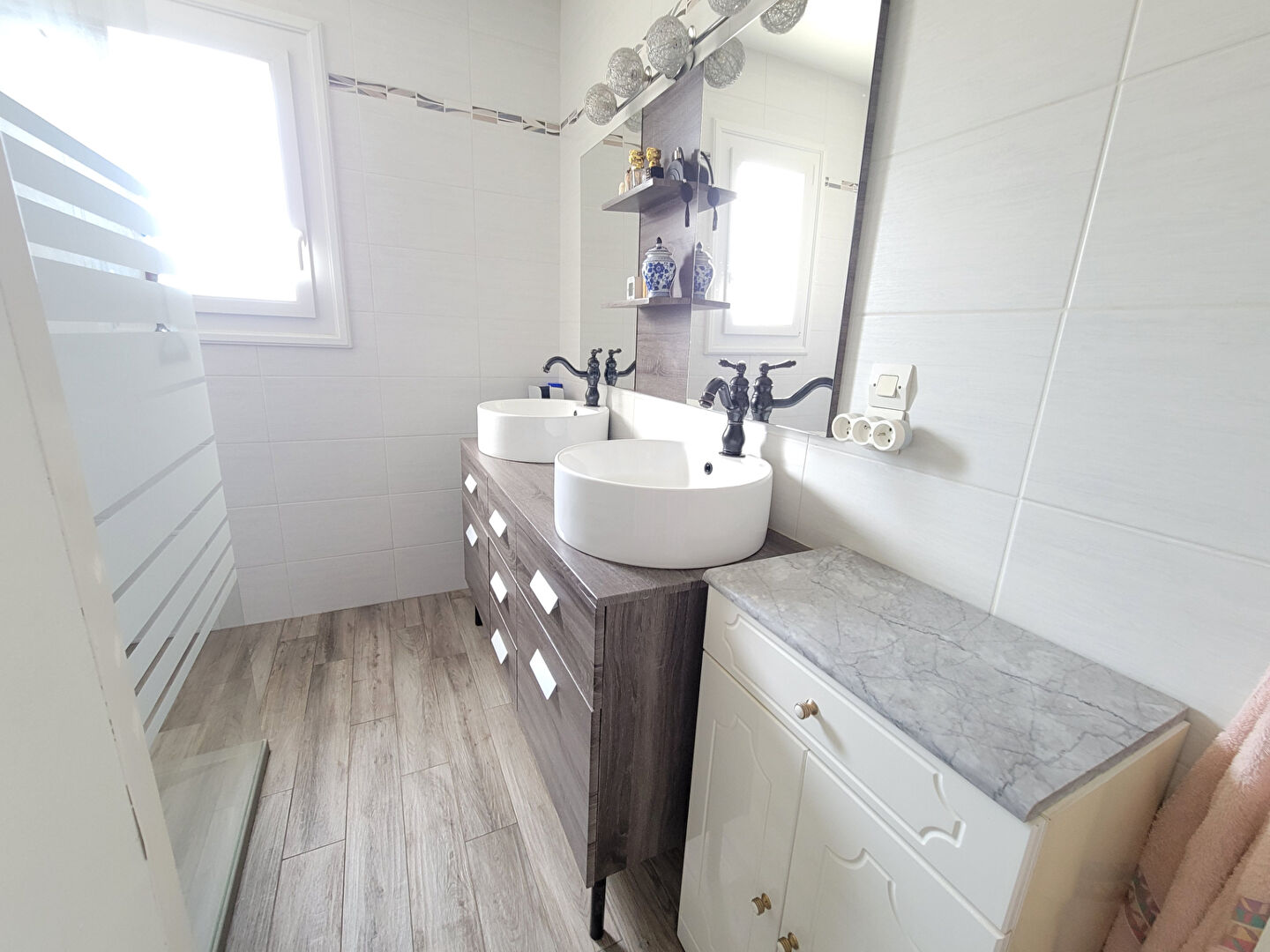 Maison rénovée (il y a deux ans) construite en 1995 et située dans une impasse, offrant un cadre calme et agréable à seulement 500m des commodités ! Elle dispose d'une entrée avec wc suspendu indépendant et lave-mains, cuisine entièrement équipée avec du matériel de qualité et placard, salon avec insert, couloir avec placard, trois chambres dont deux avec placard, salle d'eau avec douche à l'italienne, chaufferie, buanderie. Le tout accompagné d'un studio attenant avec accès indépendant ! Actuellement loué 435 euros Charges comprises, celui-ci peut être libéré pour la vente en fonction du projet souhaité. Double vitrage, moustiquaires, puits, robot de tonte et Panneaux photovoltaïques avec rendement de 527 euros/an ! Terrain agréable, sans vis-à-vis, piscine semi-enterrée non fonctionnelle à ce jour, bassin avec poissons, nombreux arbres fruitiers, serre, potager, deux abris de jardin attenant à la maison ainsi qu'un kiosque. Chauffage au bois et climatisation réversible, chauffe-eau thermodynamique Aucun travaux à prévoir, une visite s'impose ! Contact Sarah MAALEJ au O 6 18 21 79 26 "Les informations sur les risques auxquels ce bien est exposées sont disponibles sur le site Géorisques : www.georisques.gouv.fr" (5.00 % honoraires TTC à la charge de l'acquéreur.)
