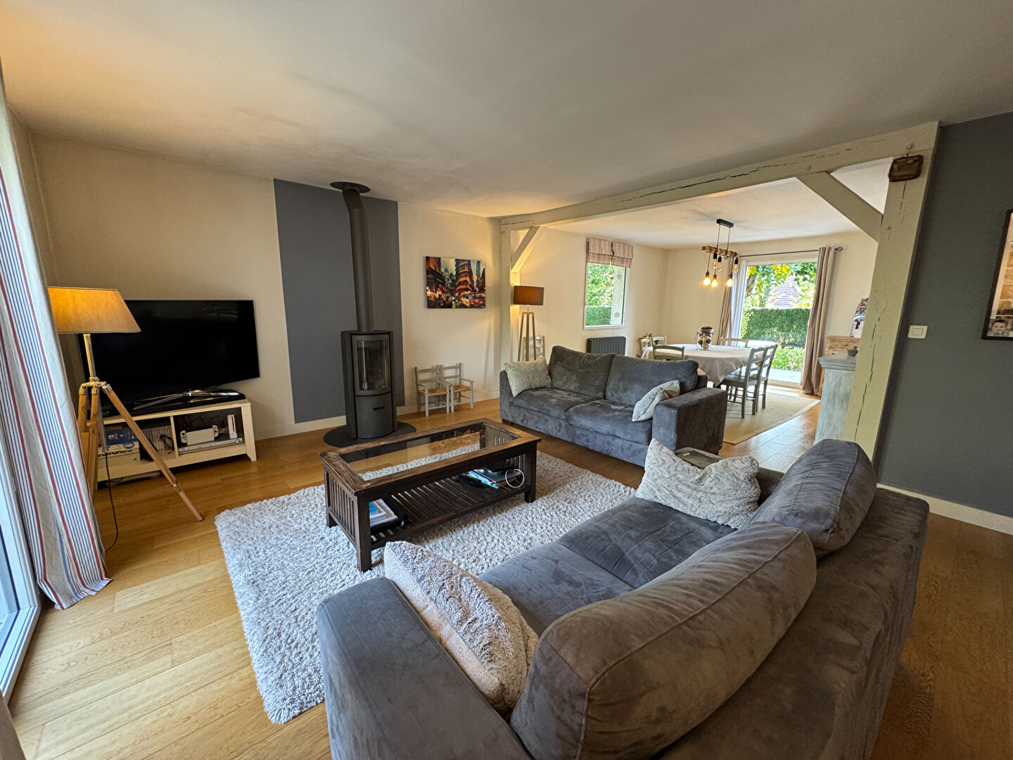 Montfort l 'Amaury/Méré , écoles , commerces et transports à pieds , jolie maison traditionnelle , édifiée sur très beau terrain plat et arboré de 1230m2 environ, piscinable , au calme absolu , sans aucun vis à vis . Entrée cathédrale donnant sur belle pièce à vivre traversante et très lumineuse , avec poêle à bois sur terrasse et jardin exposés Sud - belle cuisine ouverte sur jardin - chambre et salle de bains . A l'étage: palier coin bureau , 3 chambres et salle de bains. Sous -sol total avec garage ( 2 voitures ) . Entièrement refaite à neuf , décoration actuelle , bel environnement et possibilité d'extension . A voir ! REF: 2764 (2.44 % honoraires TTC à la charge de l'acquéreur.)