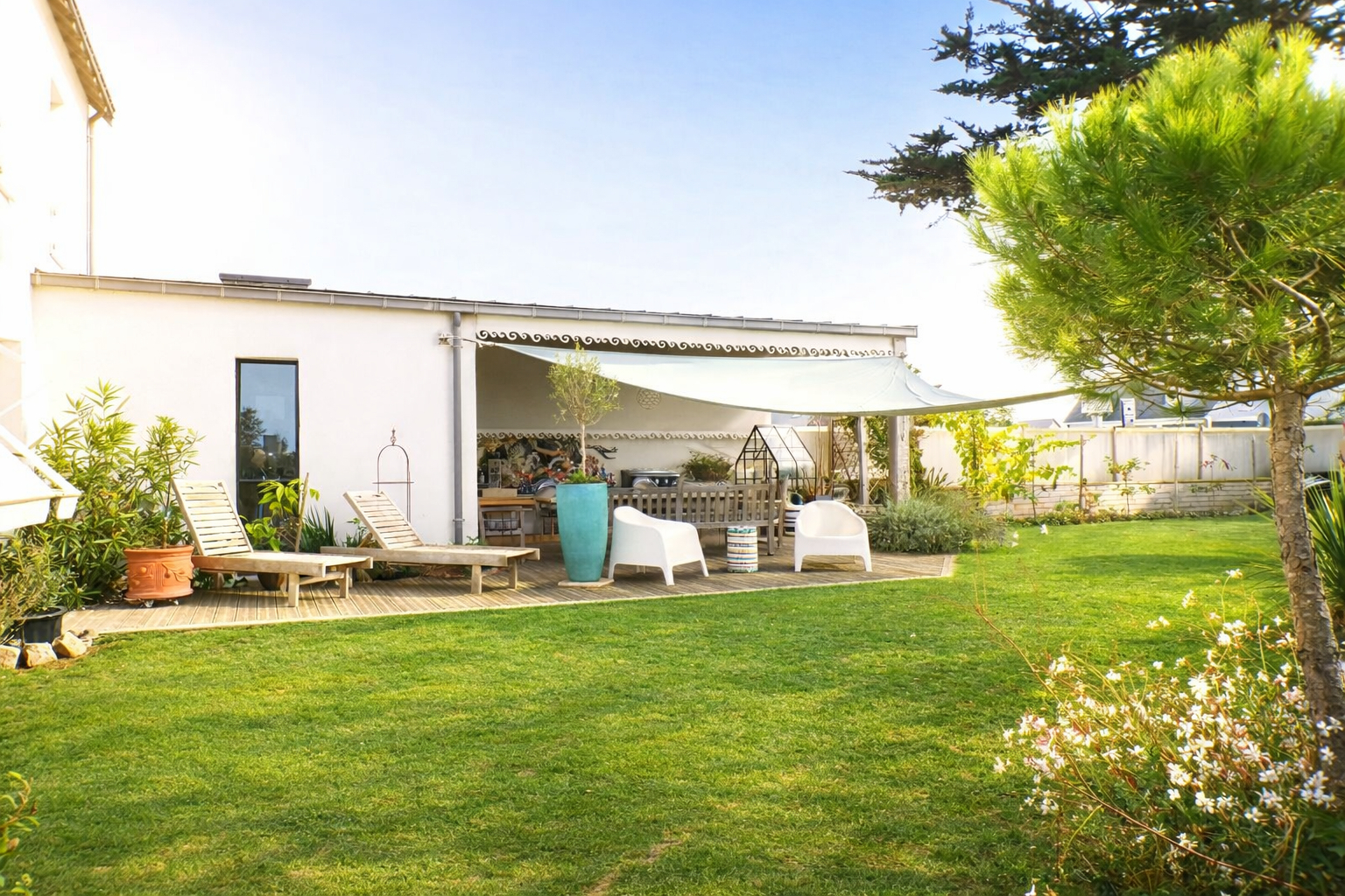 500m du Port et des halles. Très belles prestations pour cette contemporaine édifiée en 2022 . Elle comprend : Une entrée , séjour baigné de lumière avec un salon architectural, une cuisine A/E ouverte sur le séjour et la terrasse couverte exposée Sud Ouest. Dégagement desservant un wc, une lingerie et une suite parentale donnant sur un patio. A l'étage ; Palier , espace lecture, une chambre avec dressing, salle d'eau et wc. Deux chambres dont une avec bureau aperçu mer, salle d'eau, wc et dortoir. Attenant à la maison un garage et cellier. Abris vélo. Le tout sur un jardin clos et arboré. (5.15 % honoraires TTC à la charge de l'acquéreur.)
