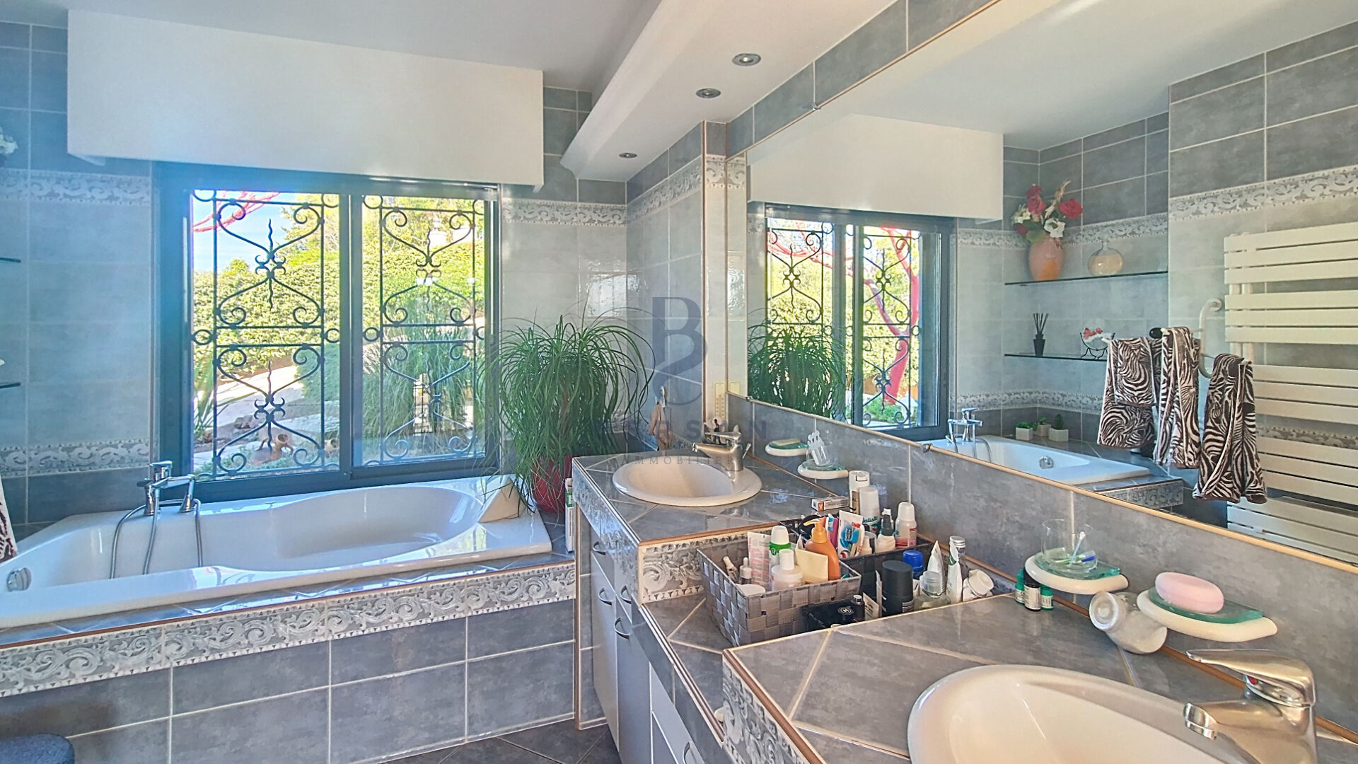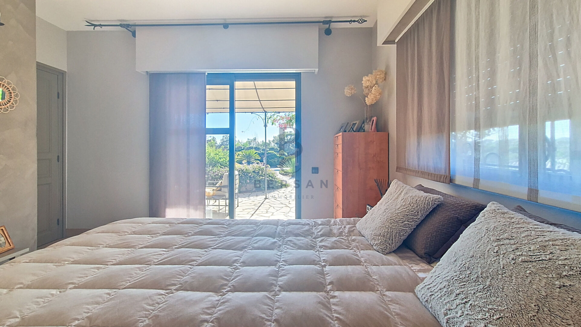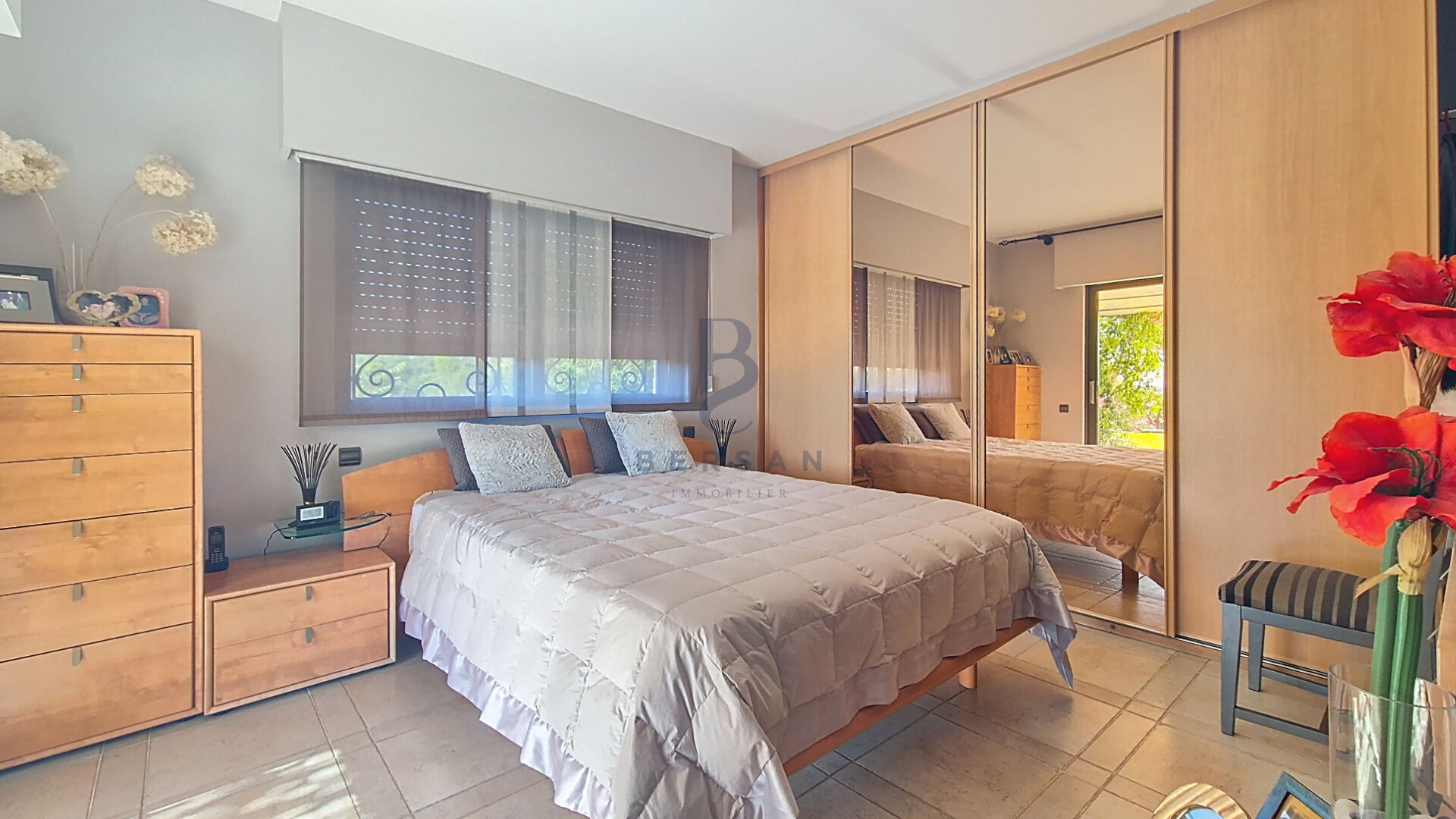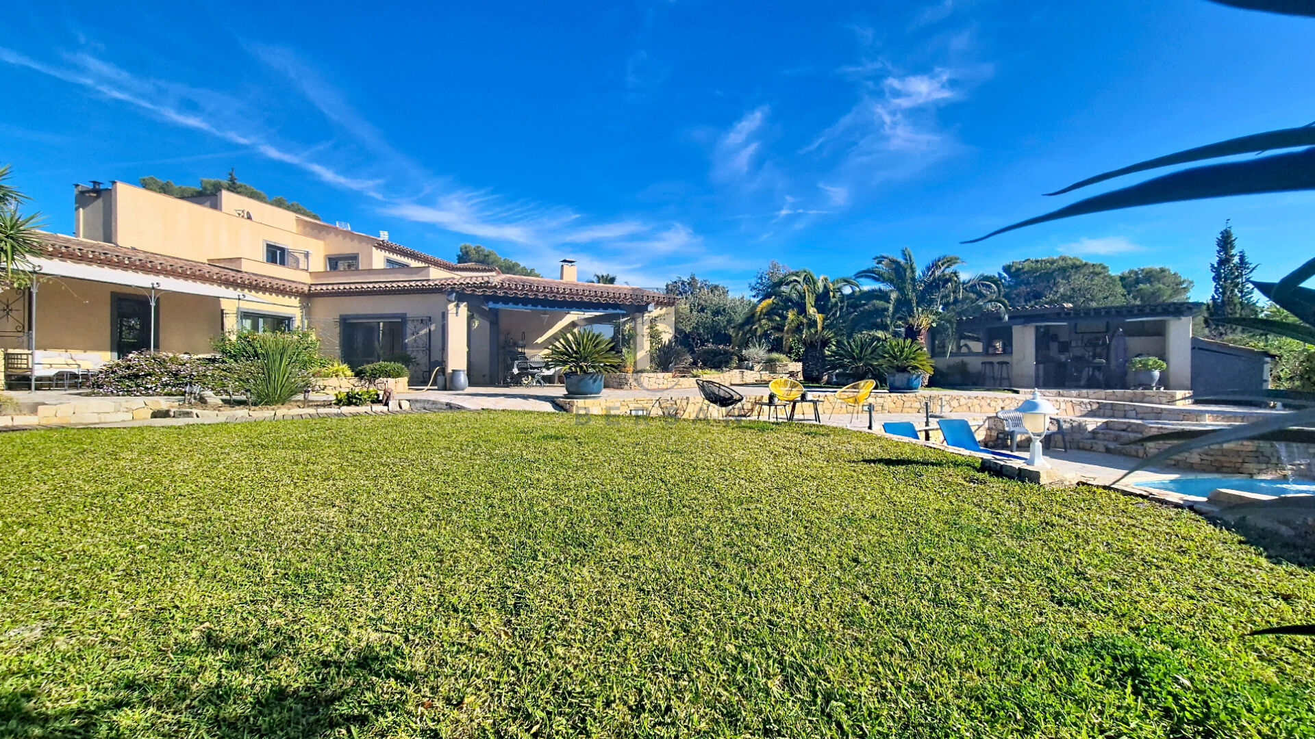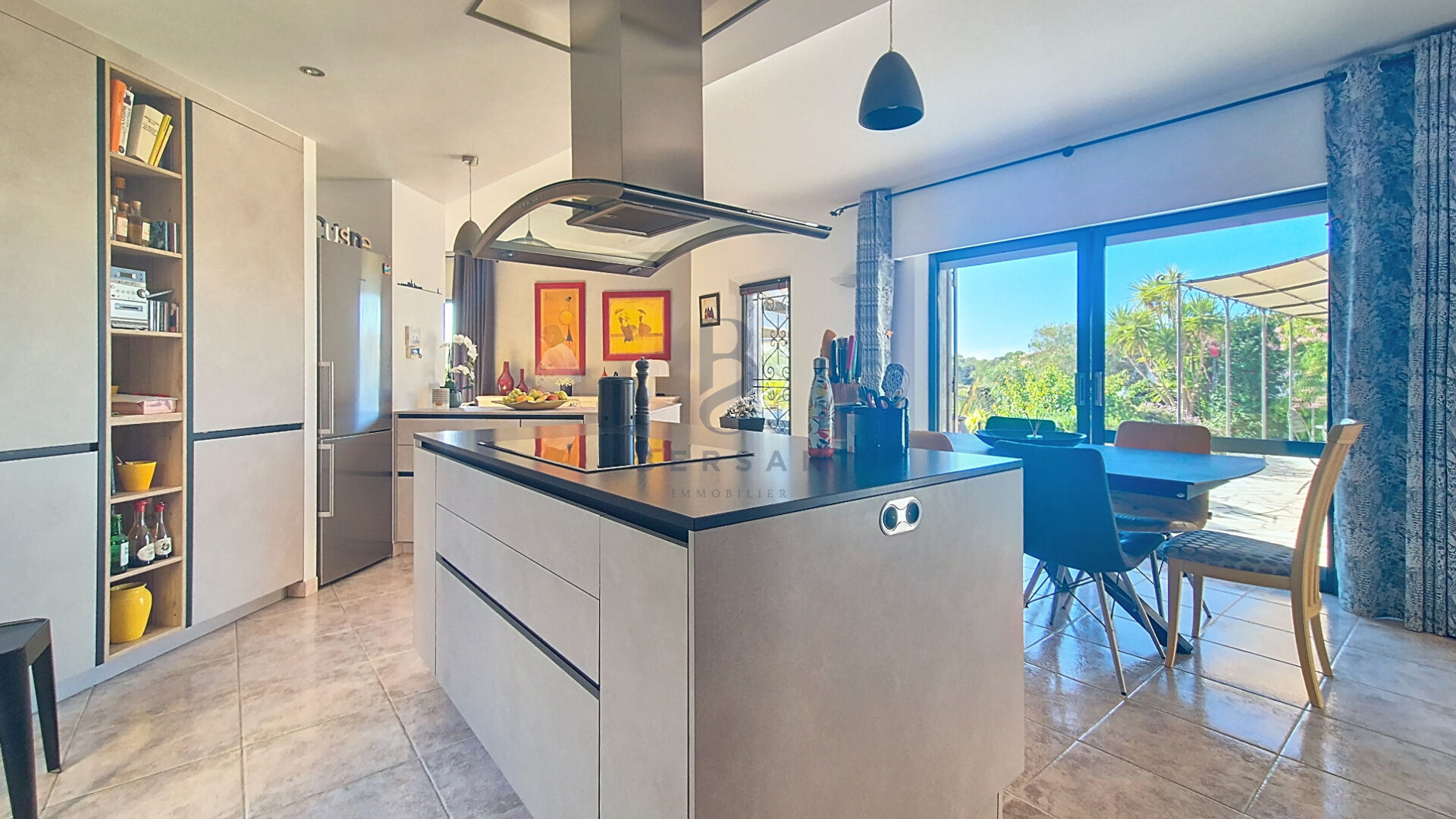 Votre agence BERSAN Immobilier vous propose cette superbe villa idéalement située à proximité des commerces, golfs et plages. Cette propriété vous séduira par son architecture élégante, ses volumes lumineux et ses prestations, nichée dans un environnement calme et verdoyant avec une vue panoramique à couper le souffle. L'entrée s'ouvre sur un vaste séjour baigné de lumière grâce à ses larges baies à galandage, une salle à manger conviviale et une cuisine équipée ouverte, créant un espace de vie chaleureux tourné vers l'extérieur. Vous y découvrirez également trois chambres de plain-pied, dont une suite parentale avec salle de bains privative, une salle d'eau, un toilette indépendant et une buanderie. L'étage abrite une grande chambre indépendante, accessible par la coursive extérieure, disposant de sa propre terrasse privative, garantissant confort et intimité. Un garage complète cet ensemble, aujourd'hui aménagé en espace de rangement. A l'extérieur, vous profiterez d'un terrain paysager de plus de 1 400 m², accueillant une piscine à débordement et un jacuzzi avec vue dégagée, une cuisine d'été toute équipée avec douche, ainsi qu'un espace détente parfaitement exposé pour savourer la quiétude du lieu. Pour votre confort : chauffage au sol, arrosage automatique, cave à vin et atelier. Plusieurs stationnements complètent les prestations. Un bien rare sur le marché, alliant élégance, calme absolu et qualité de vie exceptionnelle au coeur de Valescure. A découvrir sans tarder. L'équipe BERSAN Immobilier reste à votre disposition pour toute information complémentaire ou pour organiser une visite. Une visite virtuelle Live est disponible sur demande.