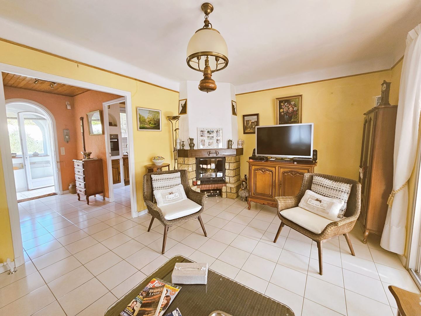 Mougins quartier résidentiel et calme , villa individuelle de 112 m2 habitable pleine de charme de 1960 et très bien entretenue, composée au rez de chaussé dun 3/4 P comprenant une entrée, un double séjour de 28 m2 avec cheminée, ( possibilité de faire une 2e chambre) prolongée d' une véranda de 25 m2 surplombant le jardin et bénéficiant d'une magnifique vue dégagée, une cuisine équipée, 1 chambre, une salle deau avec wc.