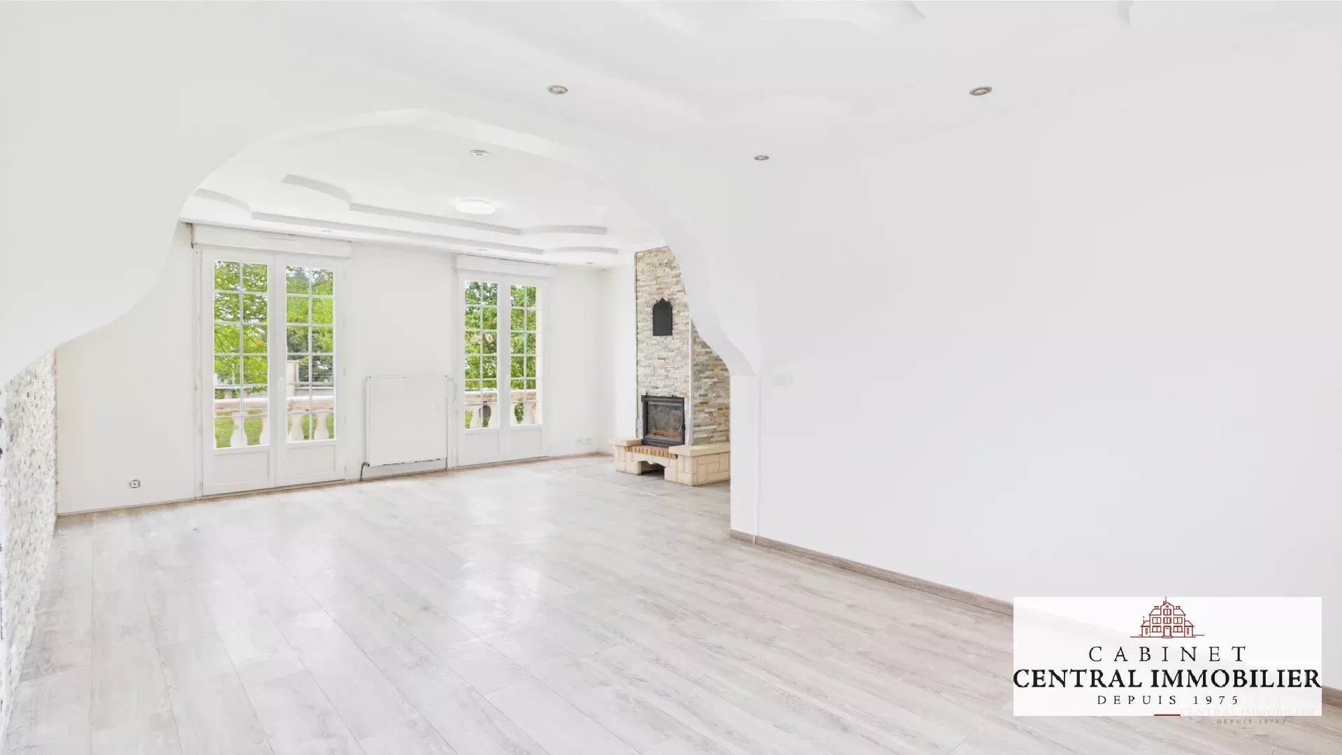 Pavillon des années 2000 comprenant une entrée parquetée de 10,54m², une cuisine aménagée et carrelée de 14,26m² avec accès à la terrasse, un séjour parqueté de 38,12m² avec cheminée insert et accès au balcon carrelé, une salle d'eau carrelée de 5,30m² avec double vasque et sèche serviettes, 2 chambres parquetées de 9,57m² et 10,65m², WC; A l'étage : une pièce palière desservant 4 chambres parquetées de 12,66m², 12,70m², 14,43m² et une de 23,95m² avec balcon, une salle d'eau carrelée de 8,88m² avec sèche serviettes et coin buanderie, WC. Le sous-sol total est isolé et comprend une chaufferie, une pièce carrelée de 21,64m² et un garage de 103,88m² Double vitrage PVC, Pompe à chaleur air/eau. Terrain clos de 1000m²