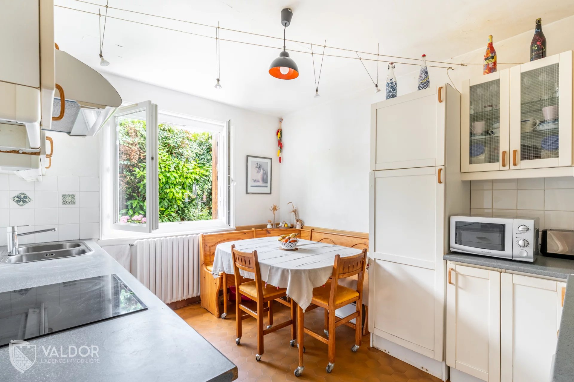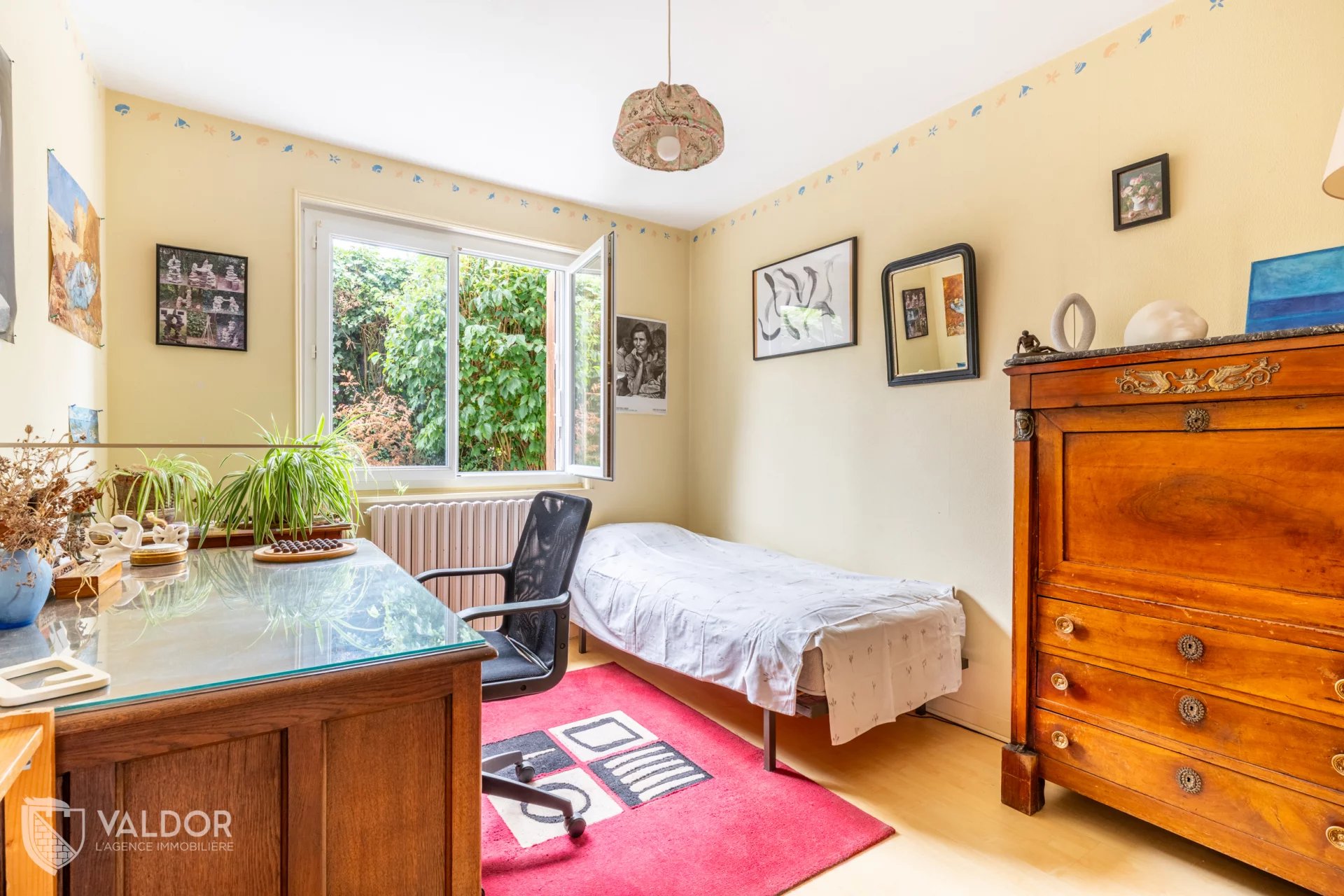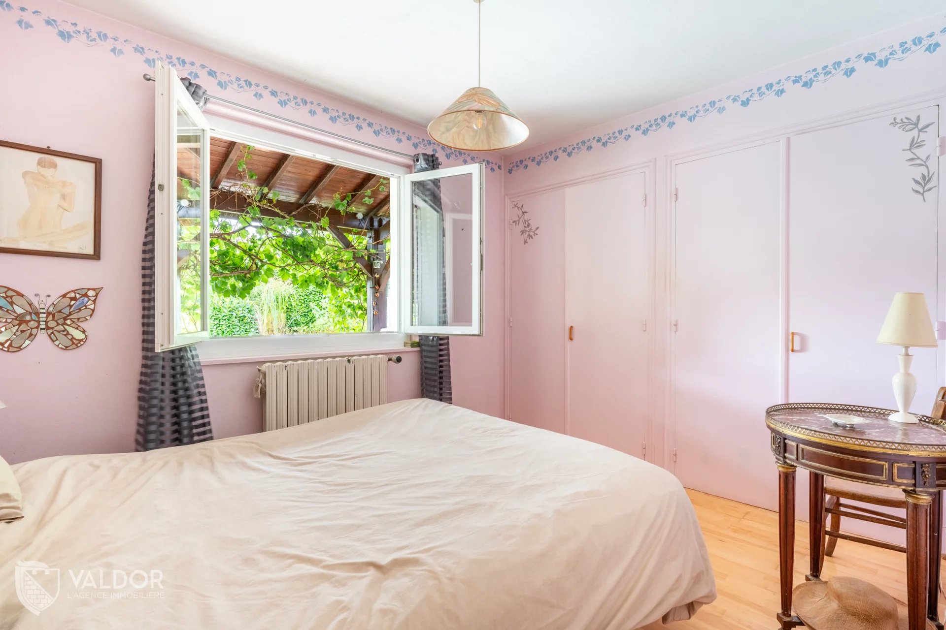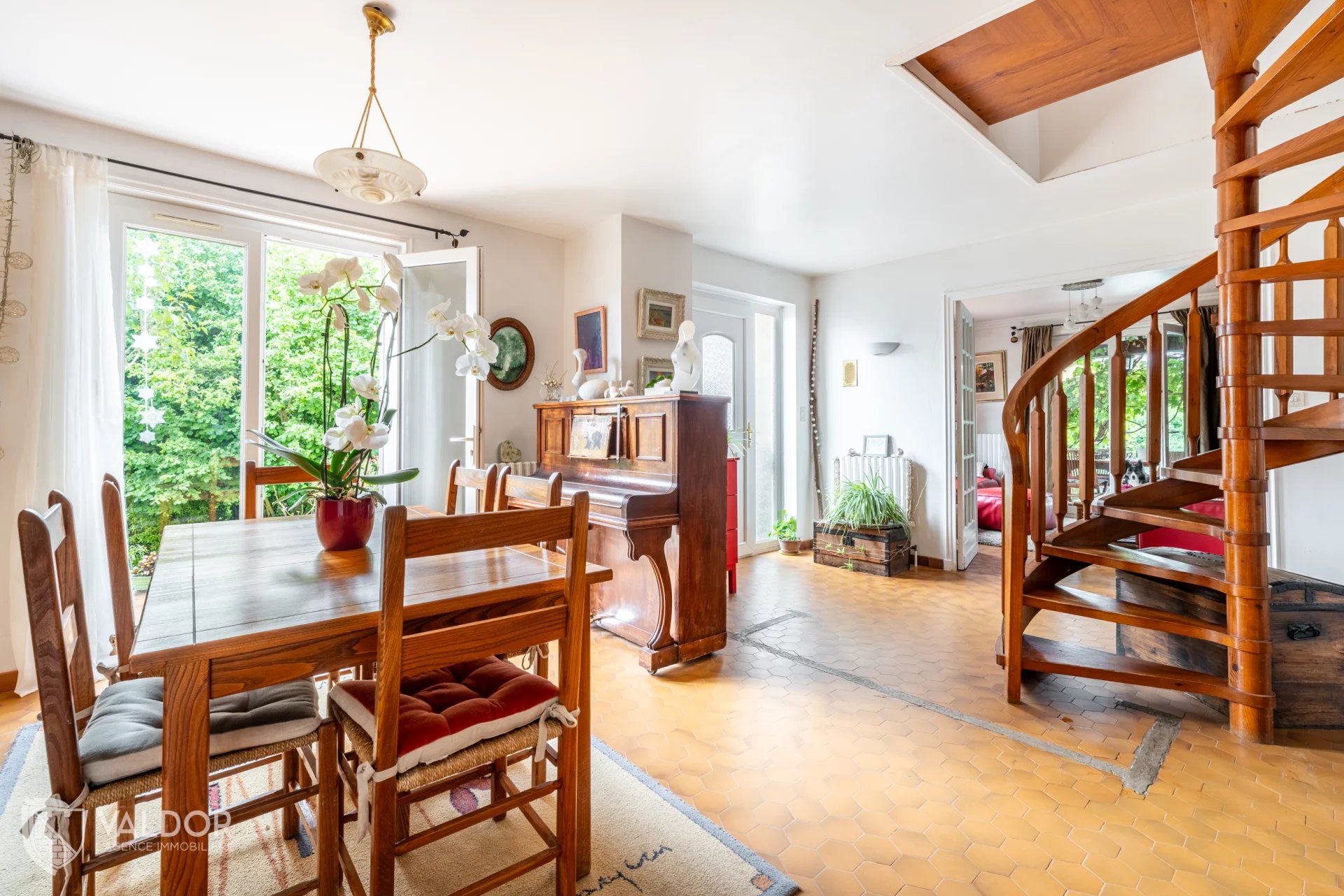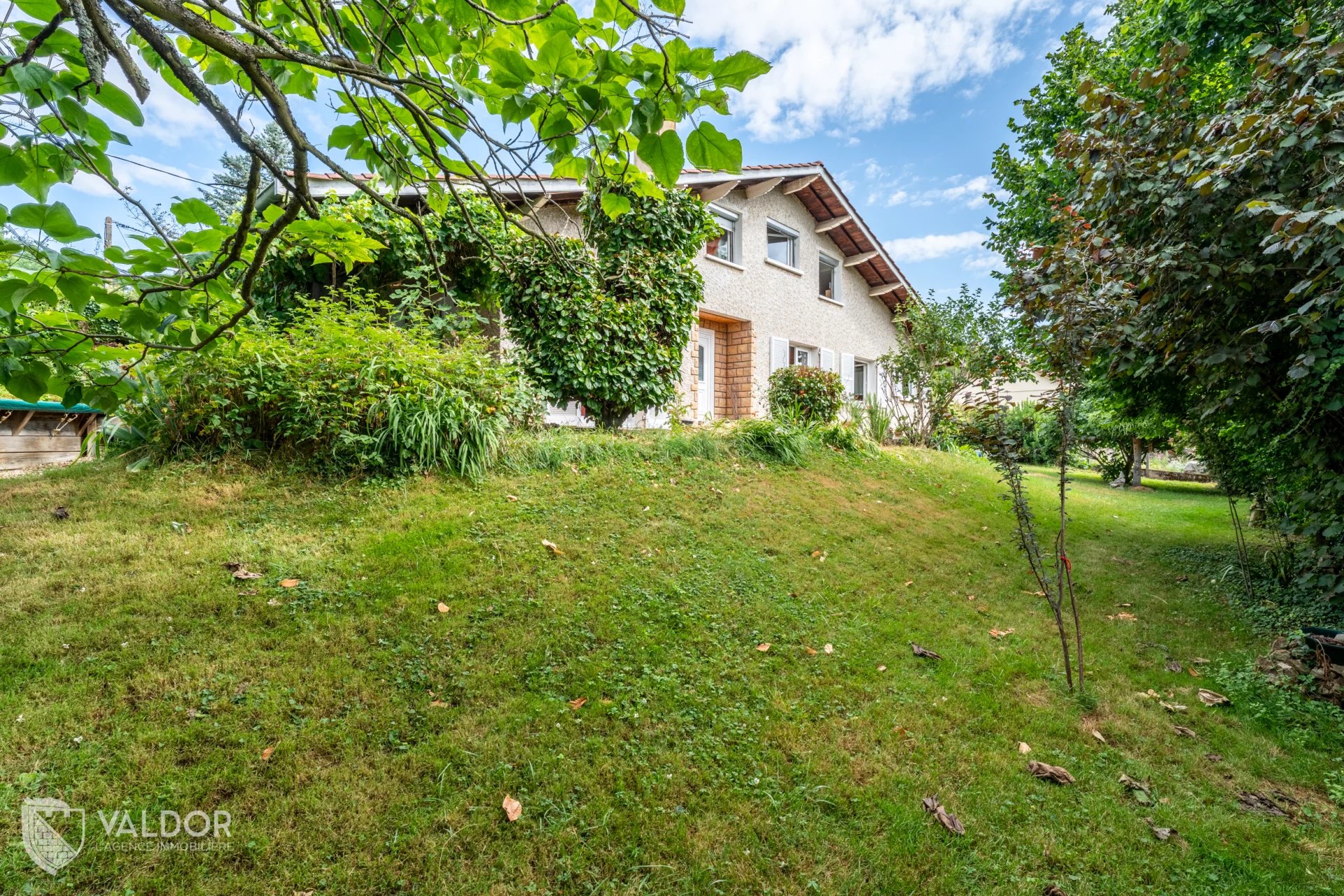 Côté jardin de grand espace vert sans vis à vis au calme et pour profiter pleinement des extérieurs découvrez une charmante terrasse couverte, en plus du coin piscine.